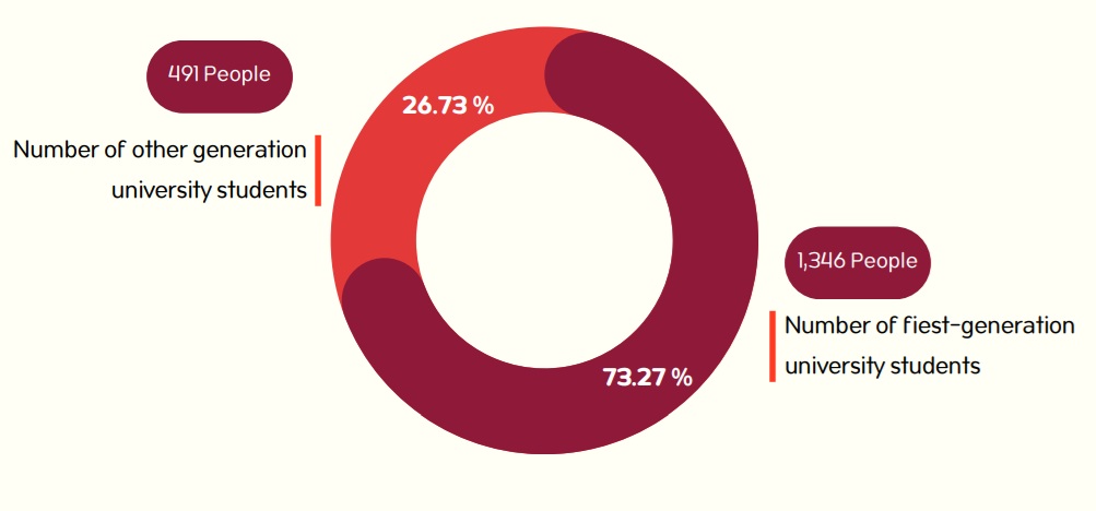 In 2023, Phetchaburi Rajabhat University had 1,837 new undergraduate students. Among them, 1,346 students were the first in theirfamilies to attend university,representing 73.27% ofthe new intake