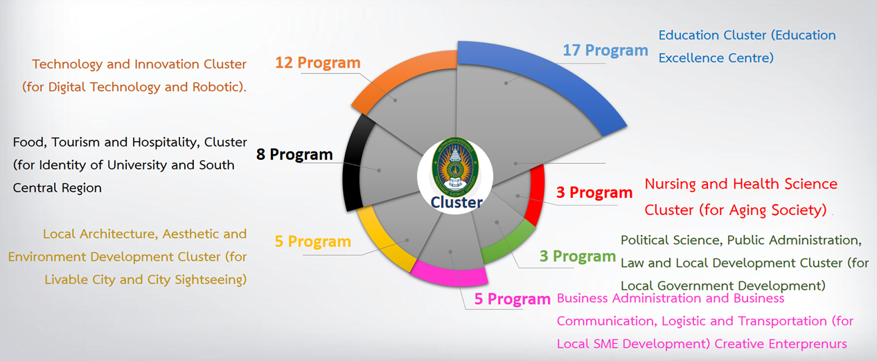 Phetchaburi Rajabhat University has a 5 years (2023 – 2027) plan for developing excellence and specialty, which sets the vision for “By 2027, being a leading university in food, tourism, health sciences by integrating sciences and creating knowledge with the King’s Philosophy for local development”. It also sets the goal that “it will be a university with excellence in producing graduates and specialized personnel, focusing on food, tourism and health sciences through integration of sciences for sustainable local development”. The objectives are to promote education, academic and professions, teaching, researching, to provide academic services to society, to improve, transfer and develop technology, to conservative arts and culture and to produce and promote teachers in all courses. The university has implemented the policies of the University Council and guidelines for university development under Section 7 of the Rajabhat University Act BE 2004, the mechanism driven by internal strengthening to promote the university’s strengths and identity and to raise value in the production chain of goods and services for the sustainable progress. There is a promotion of integrated teaching and learning management, focusing on competence, having a job and concrete learning management for learners of all ages (Cluster) that can be summarized as follows: