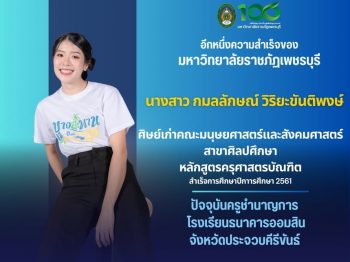 อีกหนึ่งความสำเร็จของมหาวิทยาลัยราชภัฏเพชรบุรี นางสาวกมลลักษณ์ วิริยะขันติพงษ์ ศิษย์เก่าคณะมนุษยศาสตร์และสังคมศาสตร์
