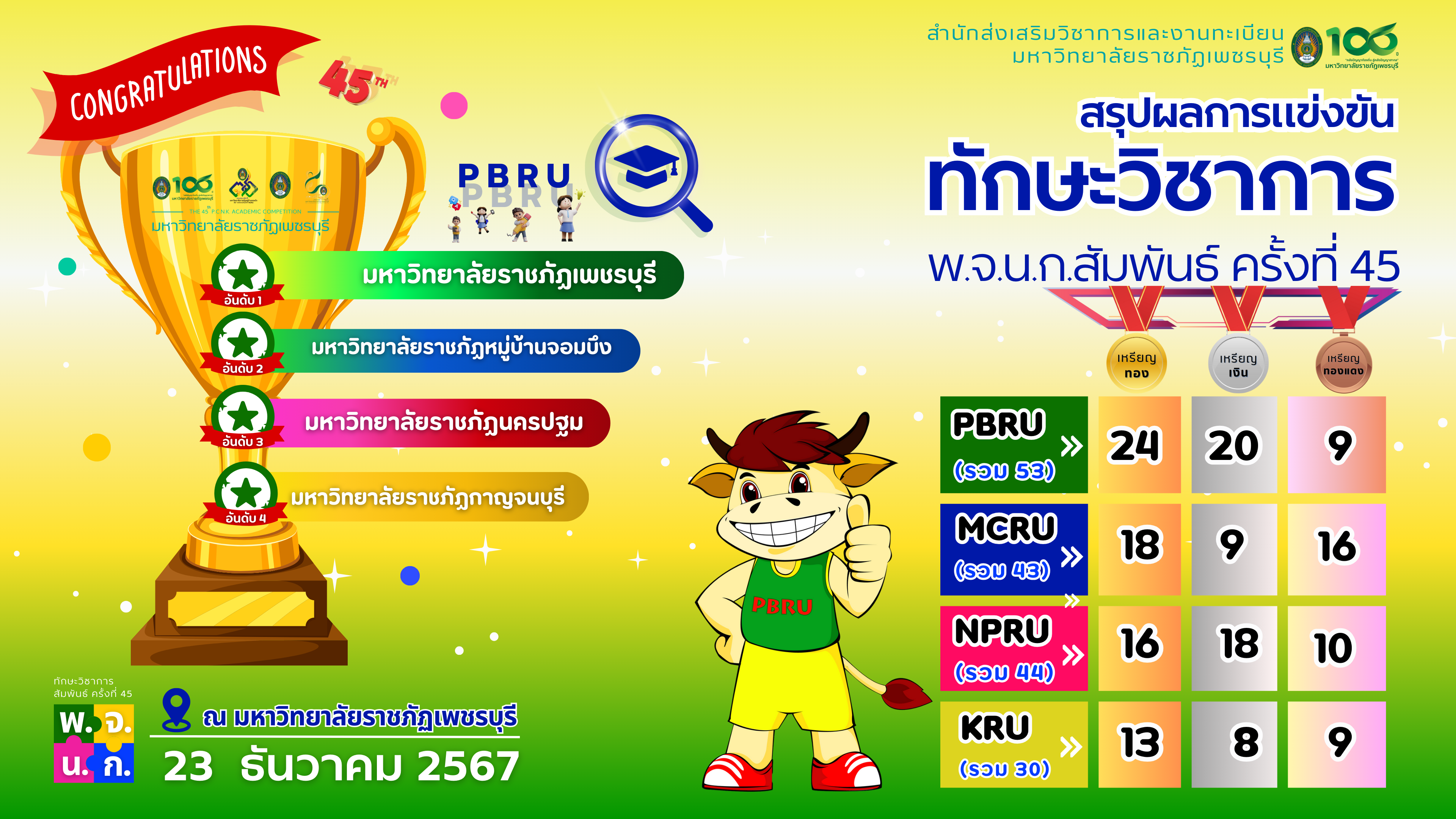 มหาวิทยาลัยราชภัฏเพชรบุรี รวมพลังมหาวิทยาลัยราชภัฏตะวันตก จัดการแข่งขันทักษะวิชาการ พ.จ.น.ก.สัมพันธ์ ครั้งที่ 45 “ตาลโตนดเกมส์”