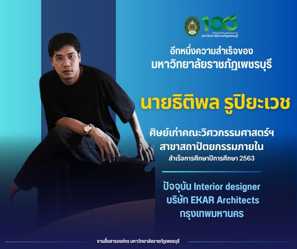 อีกหนึ่งความสำเร็จของศิษย์เก่ามหาวิทยาลัยราชภัฏเพชรบุรี ศิษย์เก่าคณะวิศวกรรมศาสตร์และเทคโนโลยีอุตสาหกรรม สาขาสถาปัตยกรรมภายใน