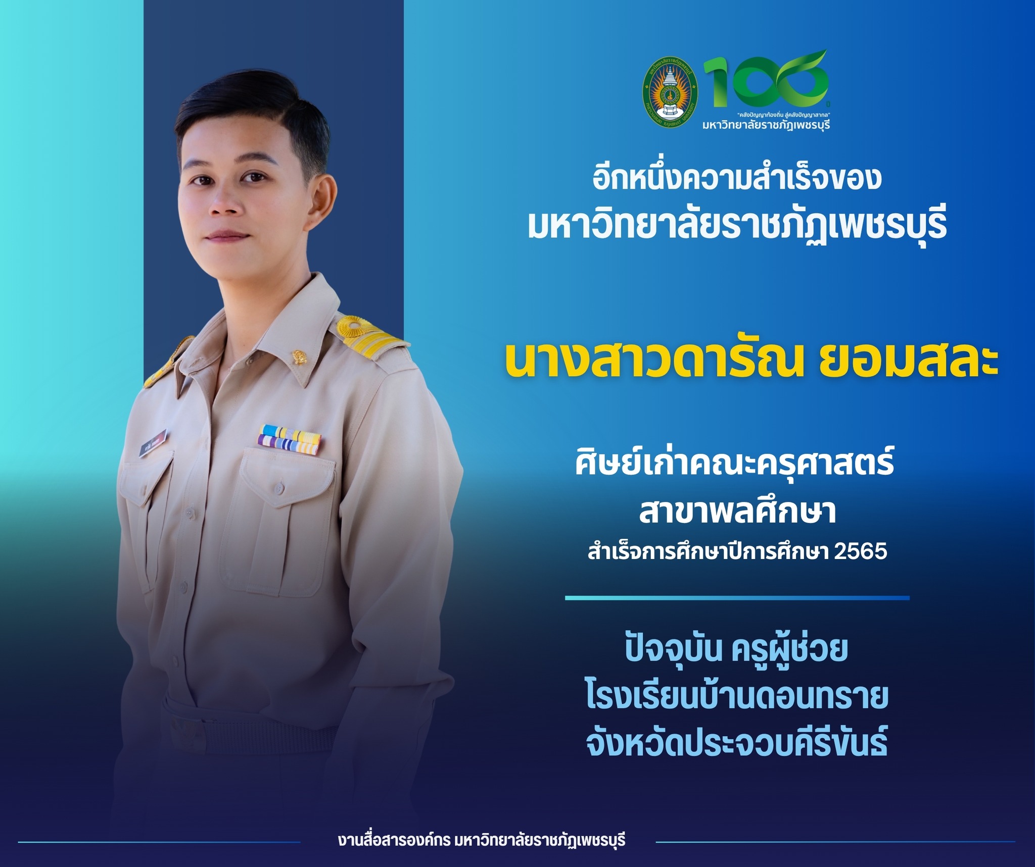 อีกหนึ่งความสำเร็จของศิษย์เก่ามหาวิทยาลัยราชภัฏเพชรบุรี ศิษย์เก่าคณะครุศาสตร์ สาขาพลศึกษา