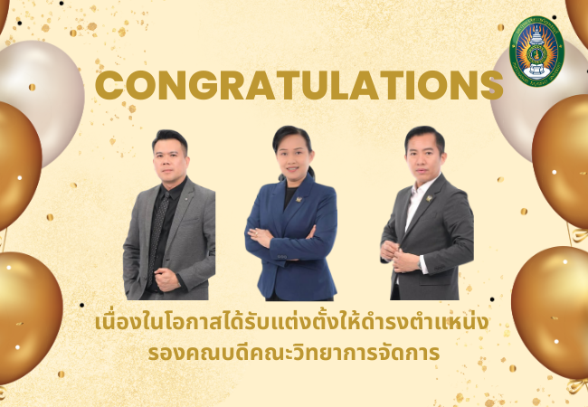 ขอแสดงความยินดีกับบุคลากรมหาวิทยาลัยราชภัฏเพชรบุรี ในโอกาสได้รับแต่งตั้งให้ดำรงตำแหน่ง รองคณบดีคณะวิทยาการจัดการ