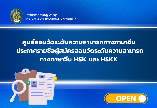 ศูนย์สอบวัดระดับความสามารถทางภาษาจีน ประกาศรายชื่อผู้สมัครสอบวัดระดับความสามารถทางภาษาจีน HSK และ HSKK