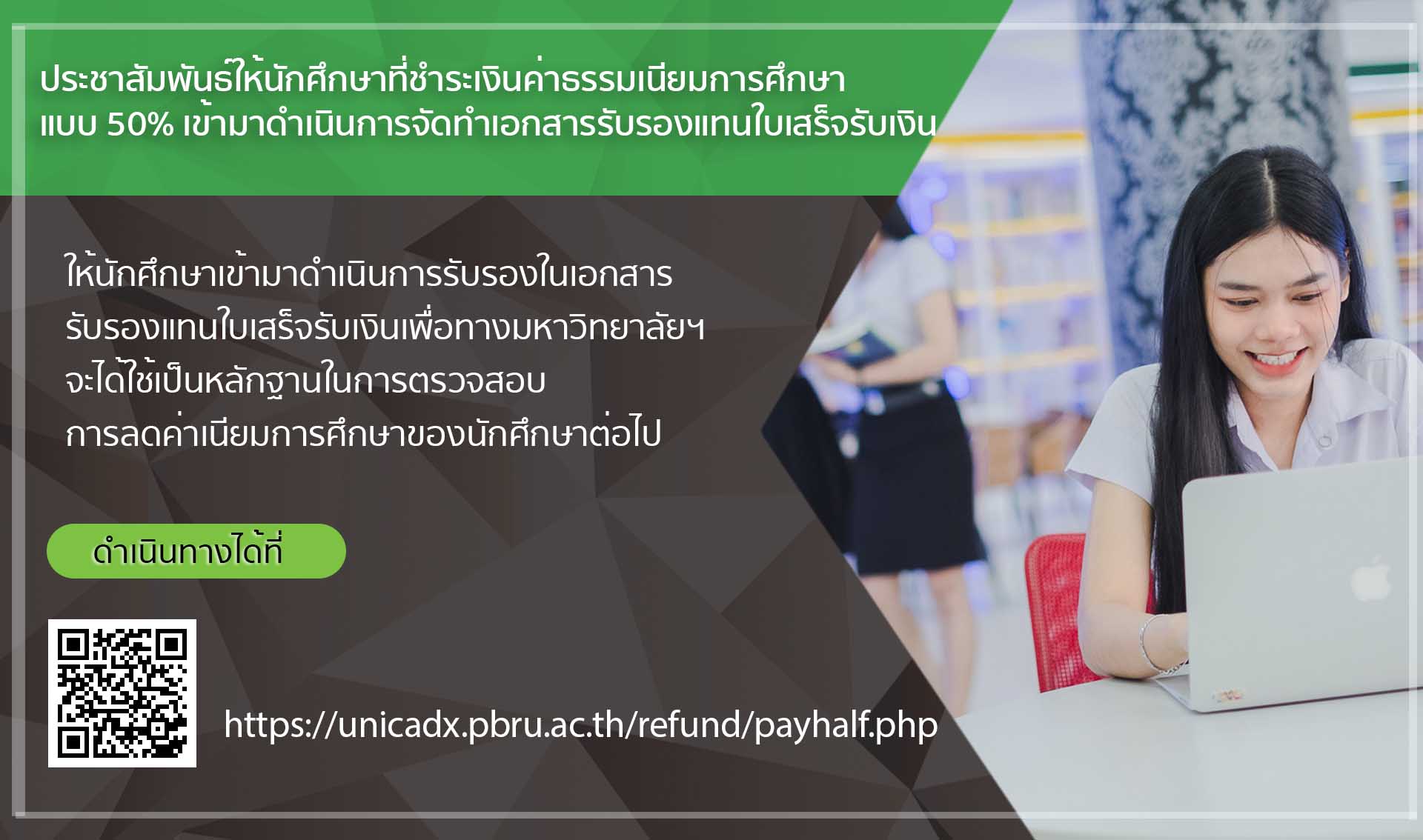 ประชาสัมพันธ์ให้นักศึกษาที่ชำระเงินค่าธรรมเนียมการศึกษา แบบ 50% เข้ามาดำเนินการจัดทำเอกสารรับรองแทนใบเสร็จรับเงิน