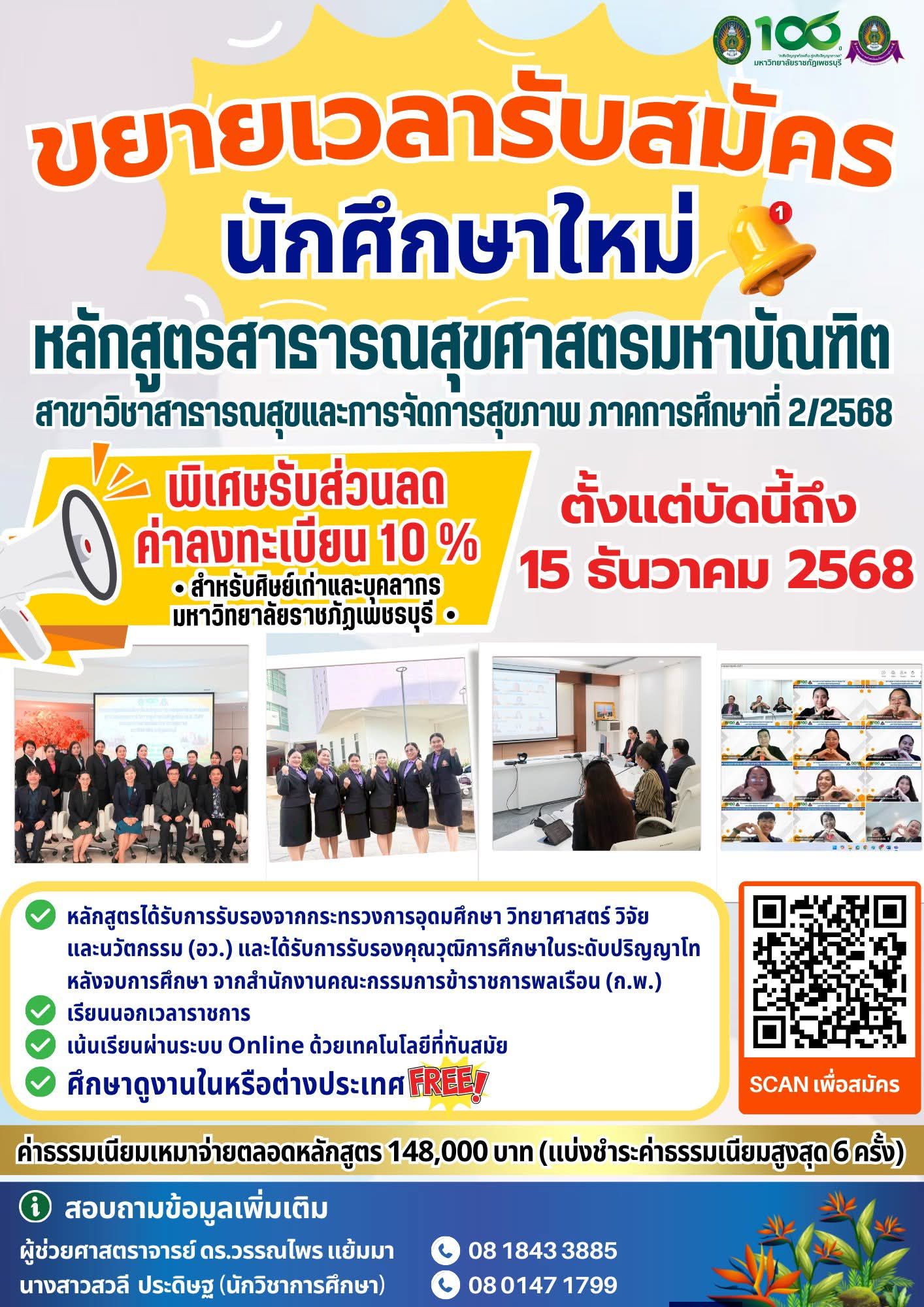 ⏰ขยายเวลารับสมัครนักศึกษา หลักสูตรสาธารณสุขศาสตรมหาบัณฑิต สาขาวิชาสาธารณสุขและการจัดการสุขภาพ ภาคการศึกษาที่ 2/2568 🎉