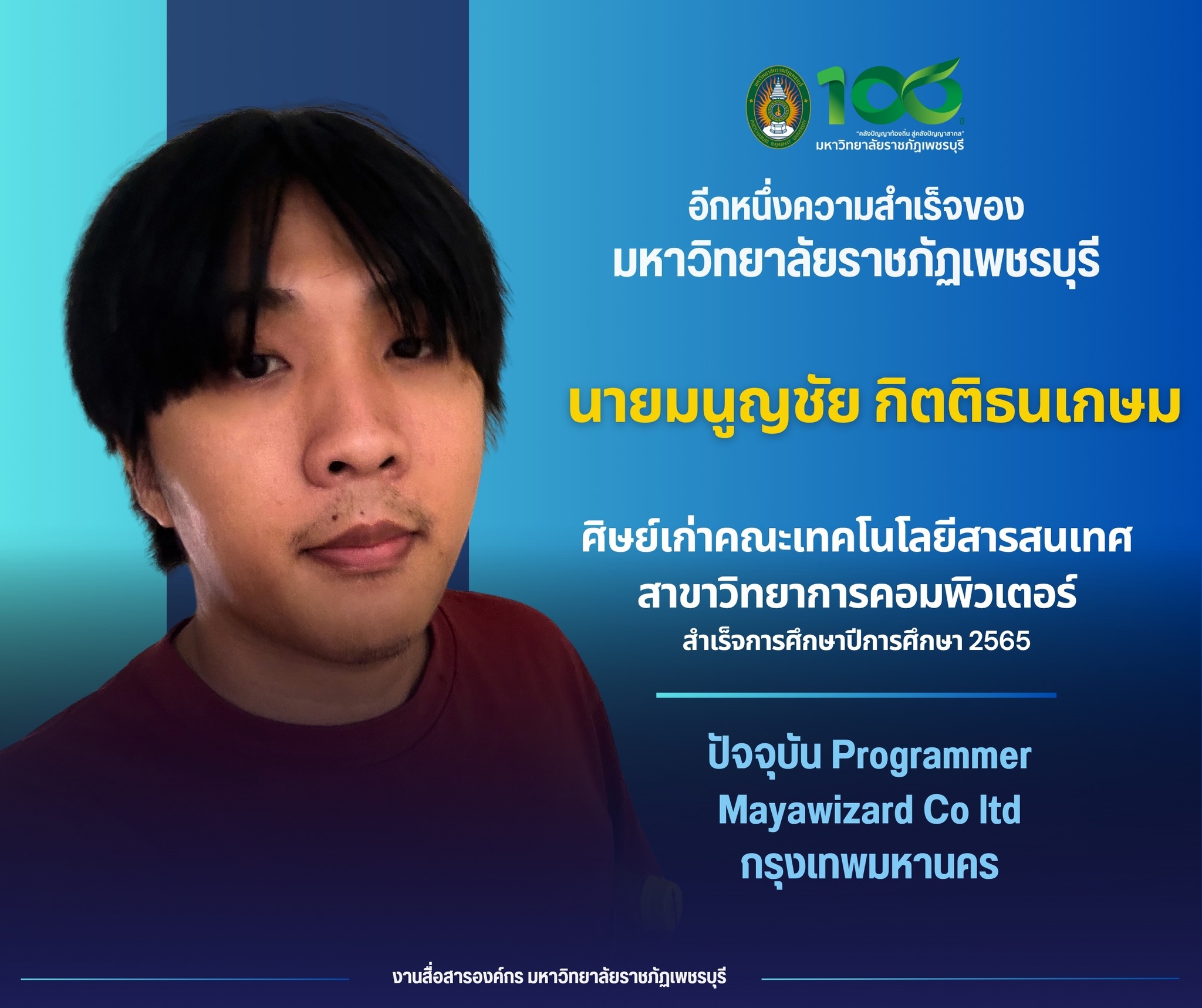อีกหนึ่งความสำเร็จของมหาวิทยาลัยราชภัฏเพชรบุรี นายมนูญชัย กิตติธนเกษม ศิษย์เก่าคณะเทคโนโลยีสารสนเทศ สาขาวิทยาการคอมพิวเตอร์