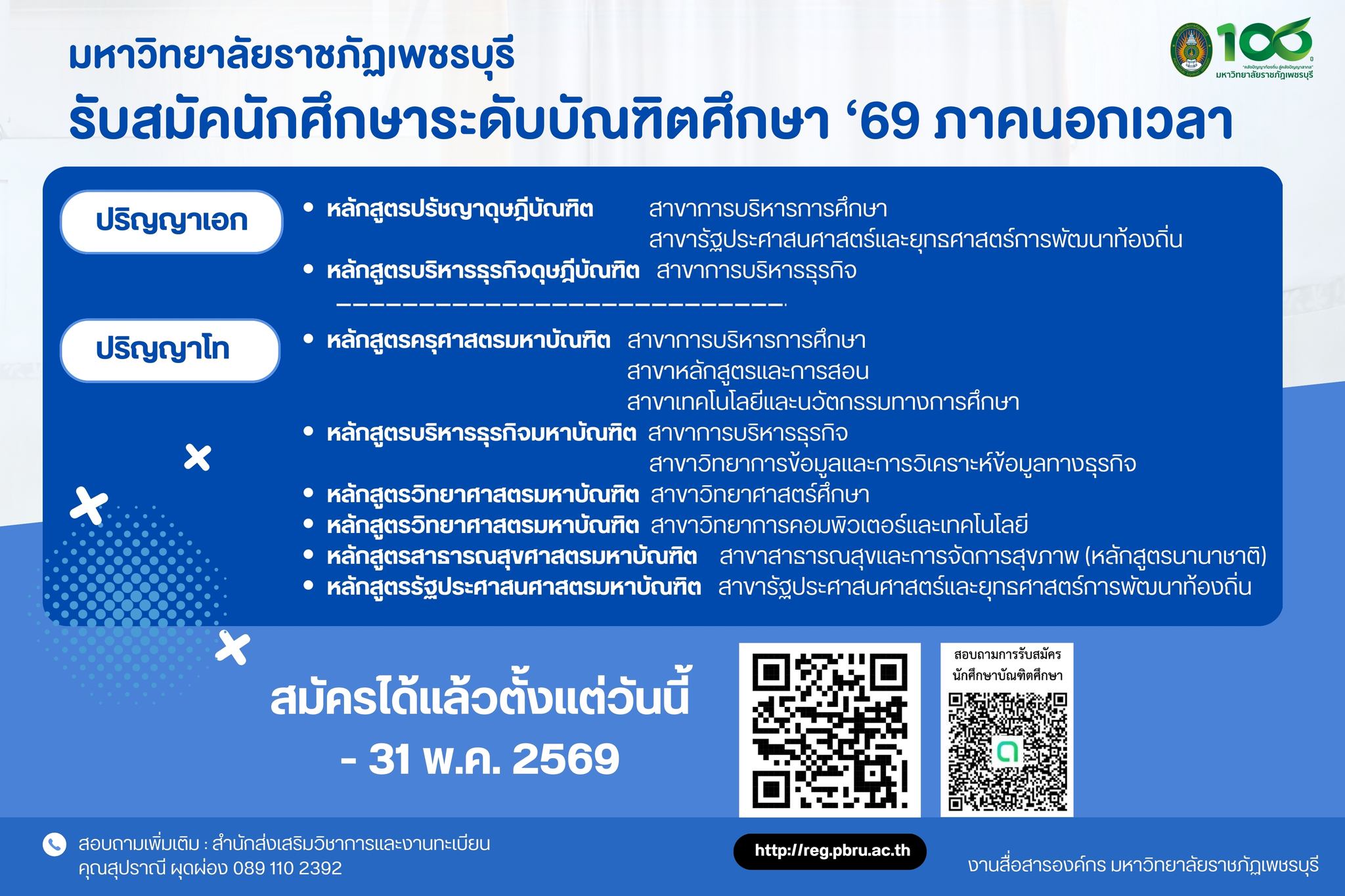 ประกาศมหาวิทยาลัยราชภัฏเพชรบุรี เรื่อง รับสมัครคัดเลือกพนักงานชั่วคราว ตำแหน่งเจ้าหน้าที่ประจำโครงการ (Project Management Office – PMO)