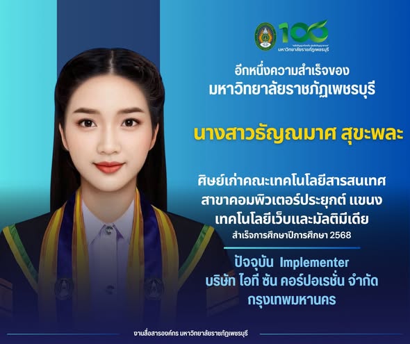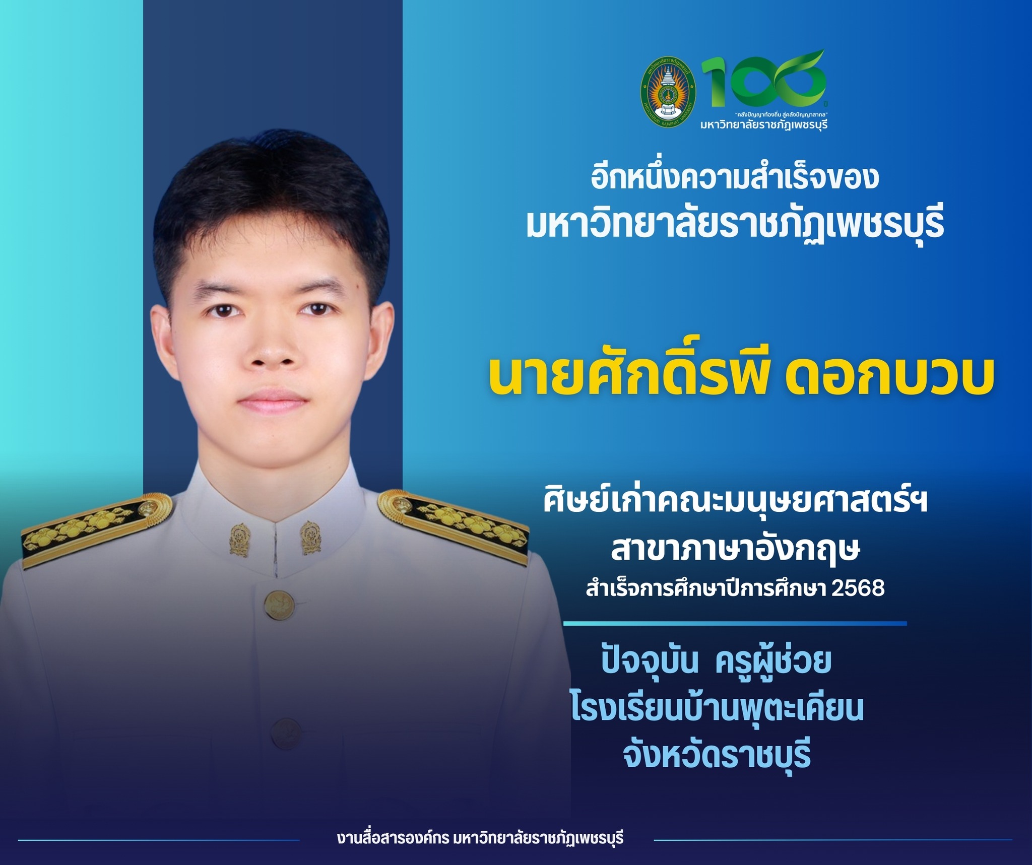 อีกหนึ่งความสำเร็จของมหาวิทยาลัยราชภัฏเพชรบุรี นายศักดิ์รพี ดอกบวบ ศิษย์เก่าคณะมนุษยศาสตร์และสังคมศาสตร์ สาขาภาษาอังกฤษ