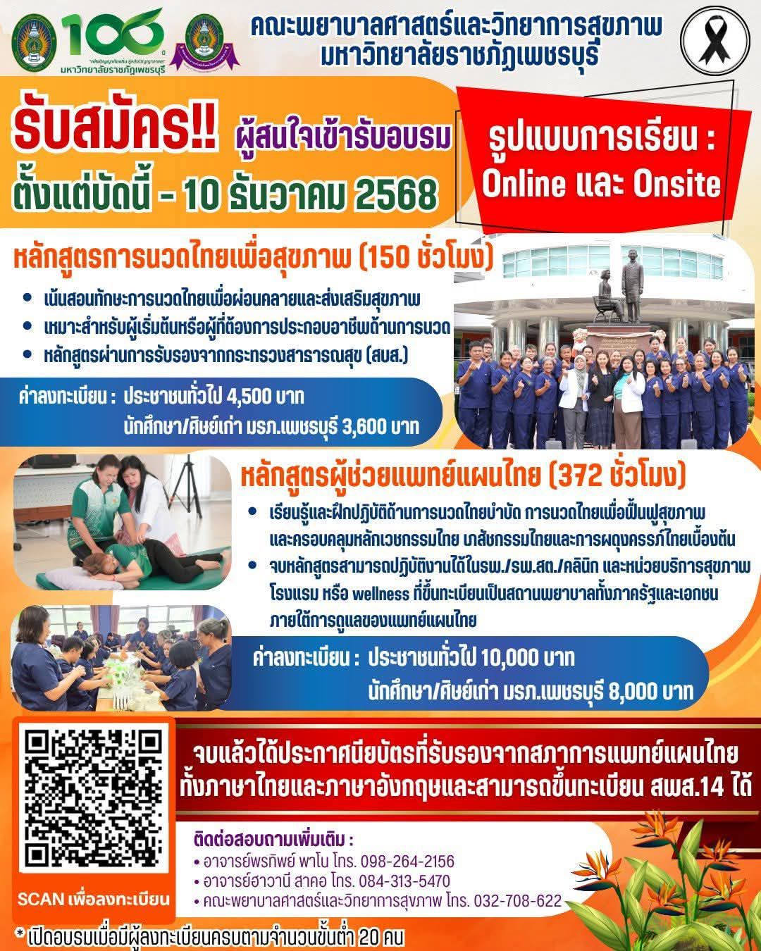 คณะพยาบาลศาสตร์และวิทยาการสุขภาพ ขอเชิญผู้สนใจสมัครอบรม 2 หลักสูตรที่ได้รับการรับรองจากสภาการแพทย์แผนไทย