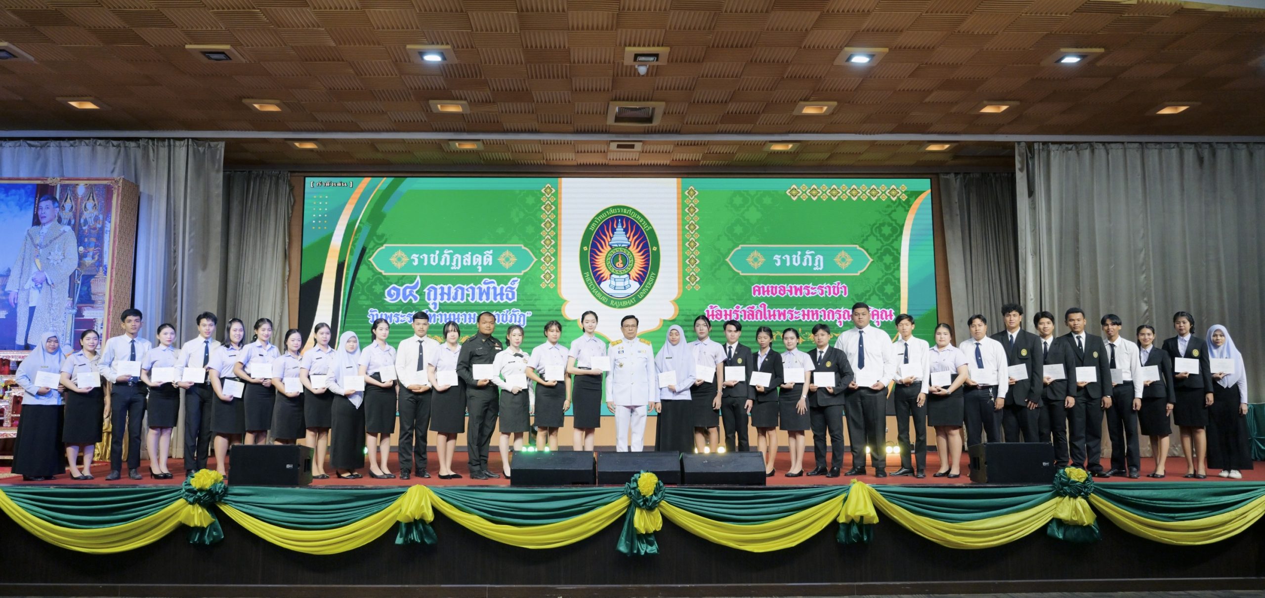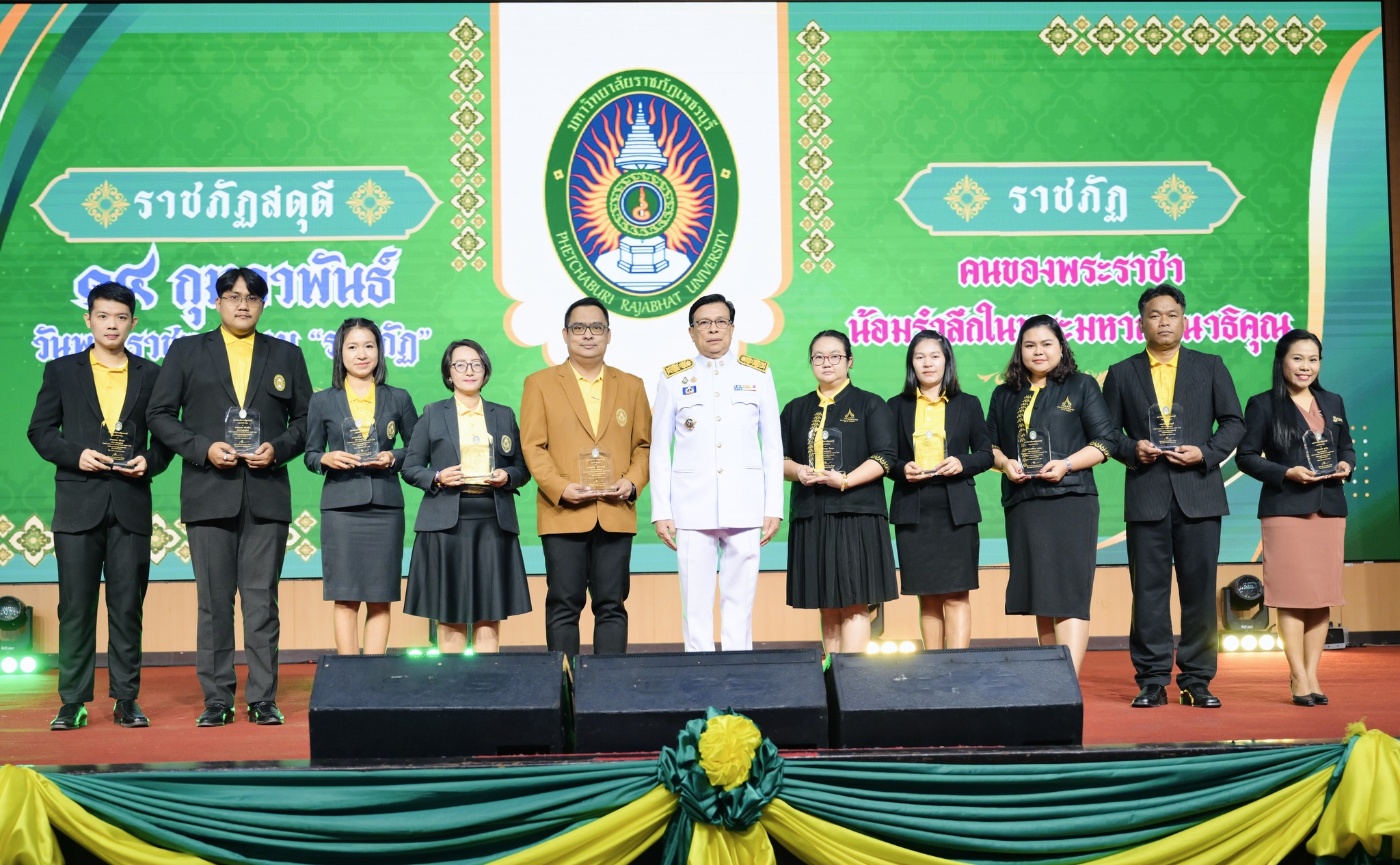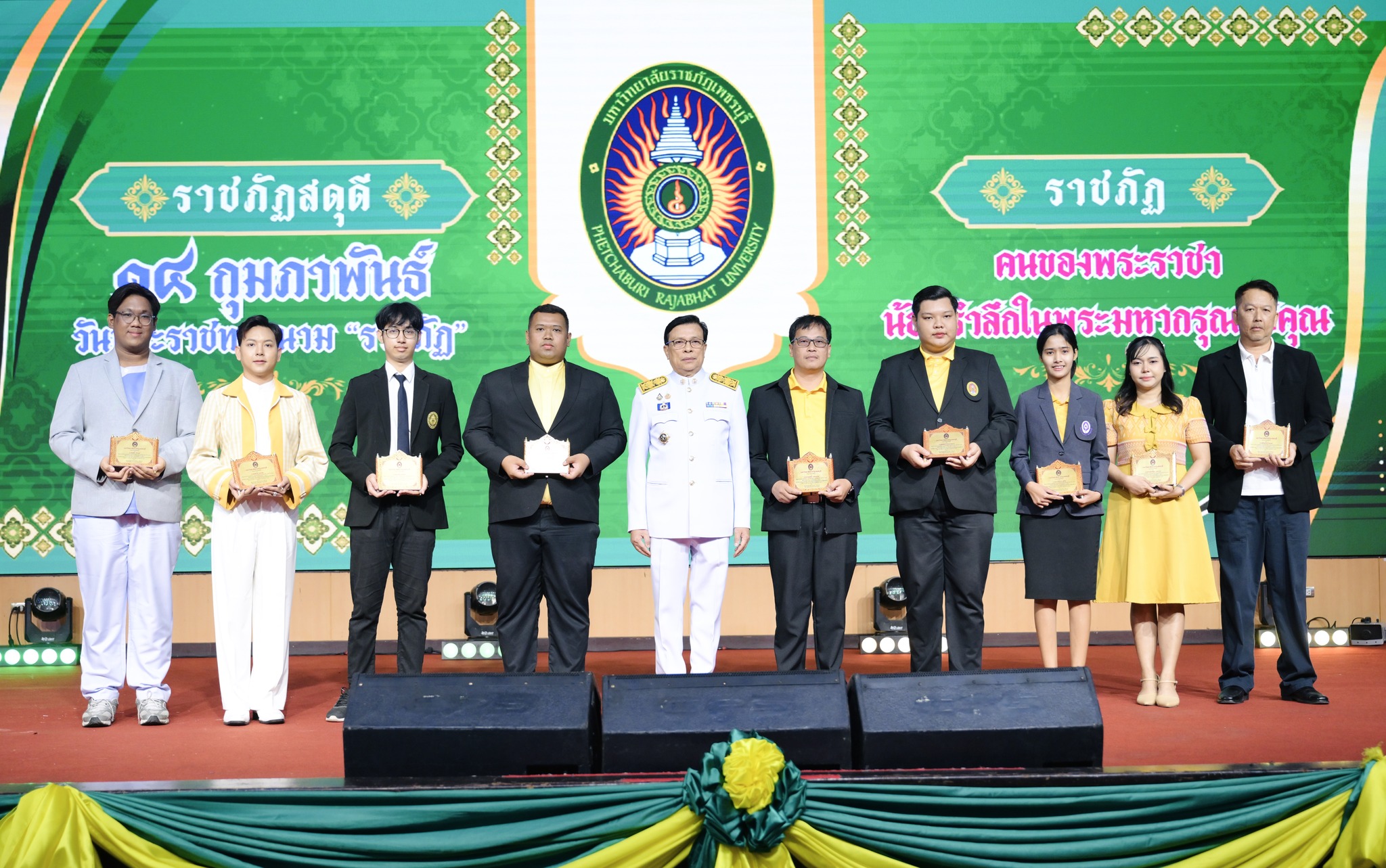 มหาวิทยาลัยราชภัฏเพชรบุรี จัดพิธีเนื่องในวันพระราชทานนาม “ราชภัฏ” 18 กุมภาพันธ์ 202518 กุมภาพันธ์ 2025piyanunข่าวประชาสัมพันธ์, ข่าวสำหรับบุคลากร, ข่าวสื่อสารองค์กร จำนวนผู้ชม : 48 มหาวิทยาลัยราชภัฏเพชรบุรี จัดพิธีเนื่องในวันพระราชทานนาม “ราชภัฏ” วันที่ 14 กุมภาพันธ์ 2566 เวลา 08.09 น. ณ บริเวณด้านข้างสนามกีฬาอเนกประสงค์ มหาวิทยาลัยราขภัฏเพชรบุรี ผู้ช่วยศาสตราจารย์ ดร.เสนาะ กลิ่นงาม อธิการบดีมหาวิทยาลัยราชภัฏเพชรบุรี เป็นประธานในการประกอบพิธีเนื่องในวันพระราชทานนามราชภัฏ “ราชภัฏสดุดี” โดยมีคณะผู้บริหารมหาวิทยาลัย คณาจารย์ บุคลากรและนักศึกษาเข้าร่วมพิธีโดยในปีนี้ได้นิมนต์พระสงฆ์มาประกอบพิธีสงฆ์ พร้อมรับบาตรข้าวสาร อาหารแห้ง เพื่อถวายเป็นพระราชกุศลแด่พระบาทสมเด็จพระบรมชนกาธิเบศร มหาภูมิพลอดุลยเดชมหาราช บรมนาถบพิตร ผู้ทรงพระราชทานนามราชภัฏ จากนั้นเป็นพิธีถวายราชสดุดี ประธานในพิธี จุดเครื่องทองน้อยและกราบบังคมหน้าพระบรมฉายาลักษณ์พระบาทสมเด็จพระบรมชนกาธิเบศร มหาภูมิพลอดุลยเดชมหาราช บรมนาถบพิตร เปิดกรวยถวายพระพรพระบาทสมเด็จพระเจ้าอยู่หัว และอ่านคำถวายราชสดุดีจากนั้นเป็นการมอบรางวัลเชิดชูเกียรติ “PBRU EXCELLENCE IN QUALITY PERSON AWARD 2025” รางวัลเชิดชูเกียรติศิษย์เก่านักกิจกรรมดีเด่นและรางวัลเชิดชูเกียรติผู้นำองค์กรกิจกรรม Facebook iconFacebookTwitter iconTwitterLINE iconLine