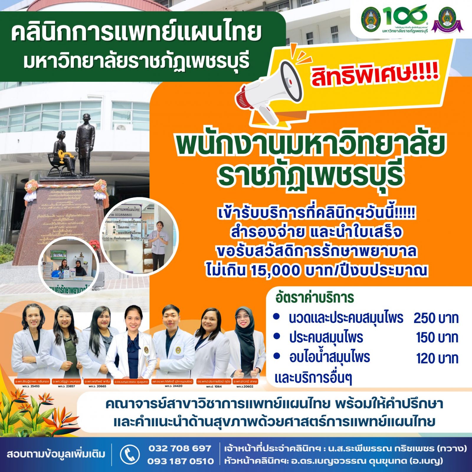 การแพทย์แผนไทย พร้อมให้คำปรึกษาและคำแนะนำด้านสุขภาพด้วยศาสตร์การแพทย์แผนไทย 27 กุมภาพันธ์ 202527 กุมภาพันธ์ 2025piyanunข่าวประชาสัมพันธ์, ข่าวสำหรับบุคลากร, ข่าวสื่อสารองค์กร จำนวนผู้ชม : 8 การแพทย์แผนไทย พร้อมให้คำปรึกษาและคำแนะนำด้านสุขภาพด้วยศาสตร์การแพทย์แผนไทย สิทธิพิเศษ สำหรับพนักงานมหาวิทยาลัยราชภัฏเพชรบุรีเข้ารับบริการที่คลินิกการแพทย์แผนไทย วันนี้ สำรองจ่าย และนำใบเสร็จขอรับสวัสดิการรักษาพยาบาลไม่เกิน 15,000 บาท/ปีงบประมาณคณาจารย์สาขาวิชาการแพทย์แผนไทย พร้อมให้คำปรึกษาและคำแนะนำด้านสุขภาพด้วยศาสตร์การแพทย์แผนไทยสอบถามข้อมูลเพิ่มเติม032 708 697 (เจ้าหน้าที่ประจำคลินิกฯ น.ส.ระพีพรรณ กริชเพชร)093 187 0510 (หัวหน้าคลินิกฯ อ.ดร.เบญจวรรณ ดุนขุนทด) Facebook iconFacebookTwitter iconTwitterLINE iconLine