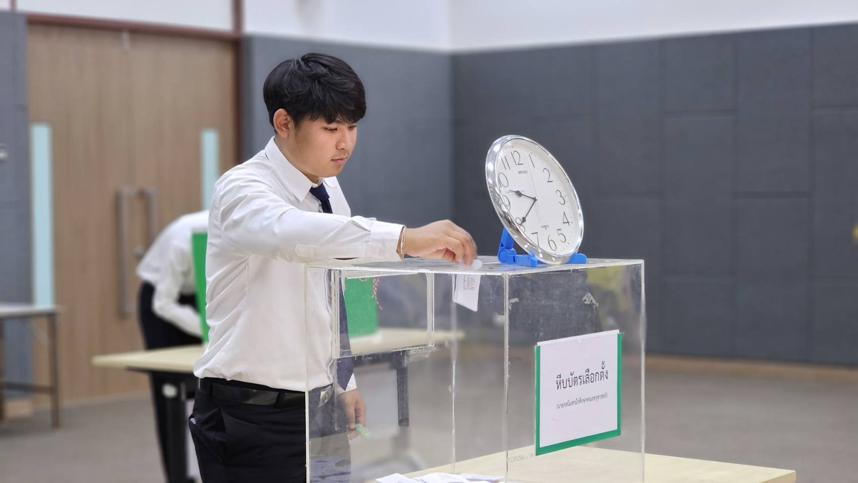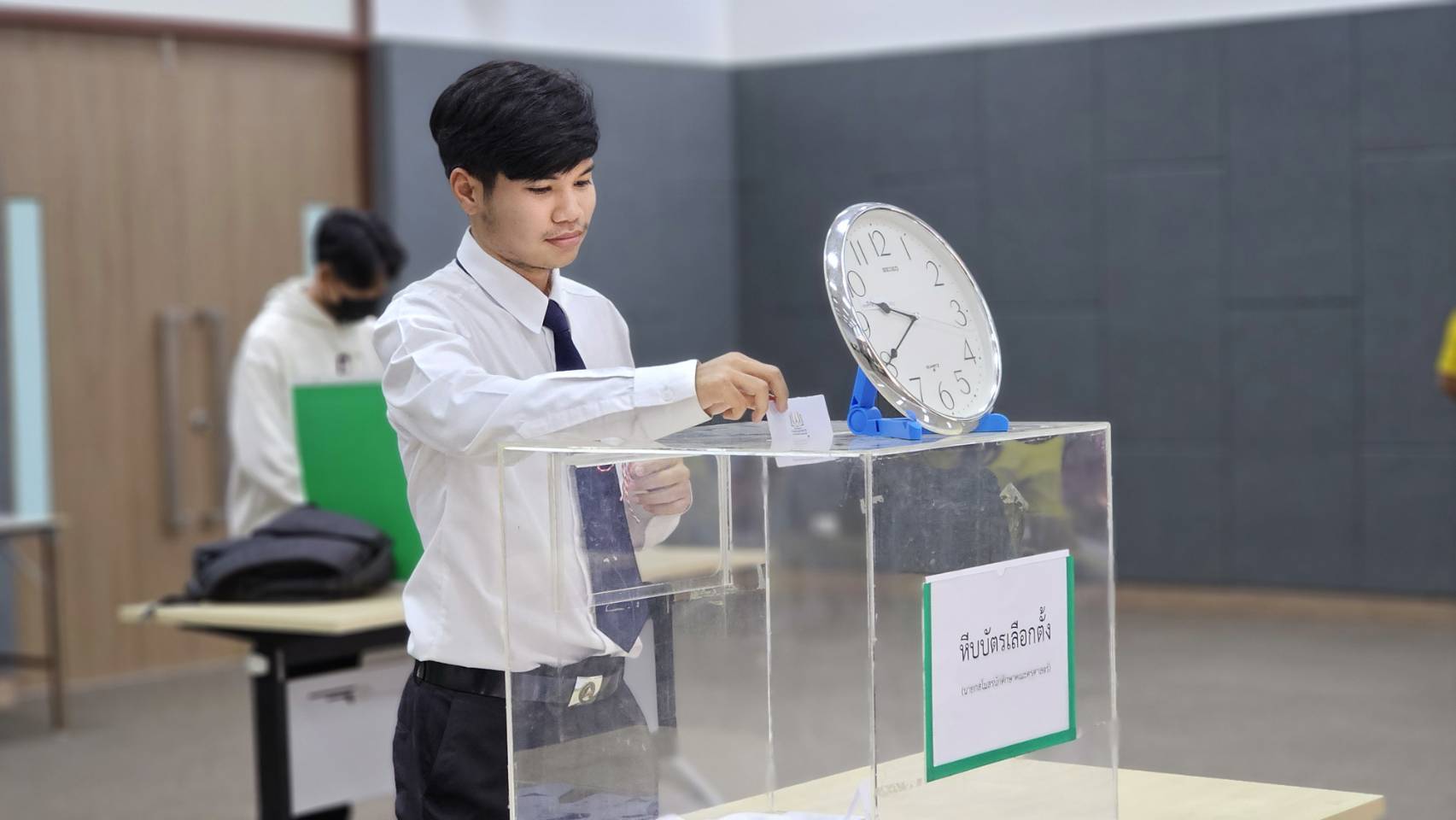 คณะครุศาสตร์การเลือกตั้งนายกสโมสนนักศึกษา ประจำปี 2568 18 มีนาคม 202518 มีนาคม 2025piyanunข่าวประชาสัมพันธ์, ข่าวสำหรับนักศึกษา, ข่าวสำหรับบุคลากร, ข่าวสื่อสารองค์กร จำนวนผู้ชม : 11 คณะครุศาสตร์การเลือกตั้งนายกสโมสนนักศึกษา ประจำปี 2568 วันที่ 17 มีนาคม 2568 คณะครุศาสตร์ จัดกิจกรรมการเลือกตั้งนายกสโมสรนักศึกษาคณะครุศาสตร์ ประจำปีการศึกษา 2568 โดยมีนักศึกษาคณะครุศาสตร์เข้าร่วมใช้สิทธิ์เลือกตั้ง ด้วยการมุ่งเน้นการส่งเสริมประชาธิปไตยในรั้วมหาวิทยาลัย เปิดโอกาสให้นักศึกษาได้แสดงออกถึงสิทธิและเสียงของตนเองในการเลือกผู้นำที่จะมาบริหารกิจกรรมนักศึกษาการเลือกตั้งครั้งนี้มีผู้สมัครชิงตำแหน่งนายกสโมสรนักศึกษา 2 คน ได้แก่ นายวราวุฒิ อันภักดี และนายพลากร แก้วผลึก ซึ่งทั้งสองคนได้แสดงวิสัยทัศน์และแนวทางพัฒนากิจกรรมนักศึกษาเพื่อให้เพื่อนนักศึกษาได้พิจารณาก่อนตัดสินใจลงคะแนน ซึ่งการจัดการเลือกตั้งเป็นไปอย่างโปร่งใสและเป็นธรรม สะท้อนถึงกระบวนการประชาธิปไตยที่เปิดโอกาสให้ทุกคนมีส่วนร่วมอย่างเสมอภาคสำหรับผลการเลือกตั้งปรากฏว่า นายพลากร แก้วผลึก ได้รับคะแนนเสียงสนับสนุนเป็นลำดับที่ 1 ส่งผลให้ได้รับเลือกให้ดำรงตำแหน่งนายกสโมสรนักศึกษาคณะครุศาสตร์ ประจำปีการศึกษา 2568 โดยจะเข้ารับหน้าที่บริหารกิจกรรมและเป็นตัวแทนนักศึกษาในการประสานงานกับคณะผู้บริหารเพื่อพัฒนากิจกรรมนักศึกษาให้มีความหลากหลายและเกิดประโยชน์สูงสุดแก่เพื่อนนักศึกษากิจกรรมการเลือกตั้งในครั้งนี้ไม่เพียงแต่เป็นกระบวนการคัดเลือกผู้นำสโมสรกิจกรรมเท่านั้น แต่ยังเป็นส่วนหนึ่งของการเรียนรู้และฝึกฝนการปกครองในระบอบประชาธิปไตย นักศึกษาได้มีโอกาสใช้สิทธิ์ออกเสียง สนับสนุนความโปร่งใส และเคารพผลการเลือกตั้ง ซึ่งเป็นพื้นฐานสำคัญของการเป็นพลเมืองที่มีคุณภาพในอนาคต #ราชภัฏเพชรบุรีกับการพัฒนาท้องถิ่น#100ปีราชภัฏเพชรบุรี Facebook iconFacebookTwitter iconTwitterLINE iconLine