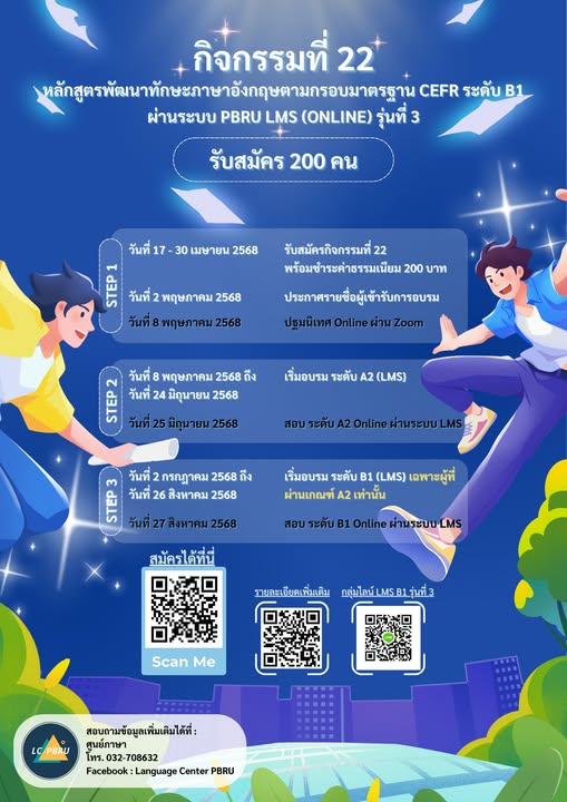พัฒนาทักษะภาษาอังกฤษตามกรอบมาตรฐาน CEFR ระดับ B1 ผ่านระบบ PBRU LMS (Online) 18 เมษายน 202518 เมษายน 2025piyanunข่าวประชาสัมพันธ์, ข่าวสำหรับบุคลากร, ข่าวสื่อสารองค์กร จำนวนผู้ชม : 15 พัฒนาทักษะภาษาอังกฤษตามกรอบมาตรฐาน CEFR ระดับ B1 ผ่านระบบ PBRU LMS (Online) กิจกรรมที่ 22: พัฒนาทักษะภาษาอังกฤษตามกรอบมาตรฐาน CEFR ระดับ B1 ผ่านระบบ PBRU LMS (Online) รุ่นที่ 3นักศึกษาที่ยังไม่ผ่านเกณฑ์มาตรฐานภาษาอังกฤษ CEFR ของมหาวิทยาลัยสมัครด่วนนนนนนนนนนนนนน! พร้อมชำระเงิน 200 บาทรับจำนวนจำกัดเพียง 200 คนเท่านั้นรับสมัครตั้งแต่วันที่ 17 – 30 เมษายน 2568 (ปิดรับเวลา 12.00 น.)แสกน QR code หรือ คลิก https://forms.gle/z5gHPyf88voRiGeB6 เพื่อสมัคร Facebook iconFacebookTwitter iconTwitterLINE iconLine