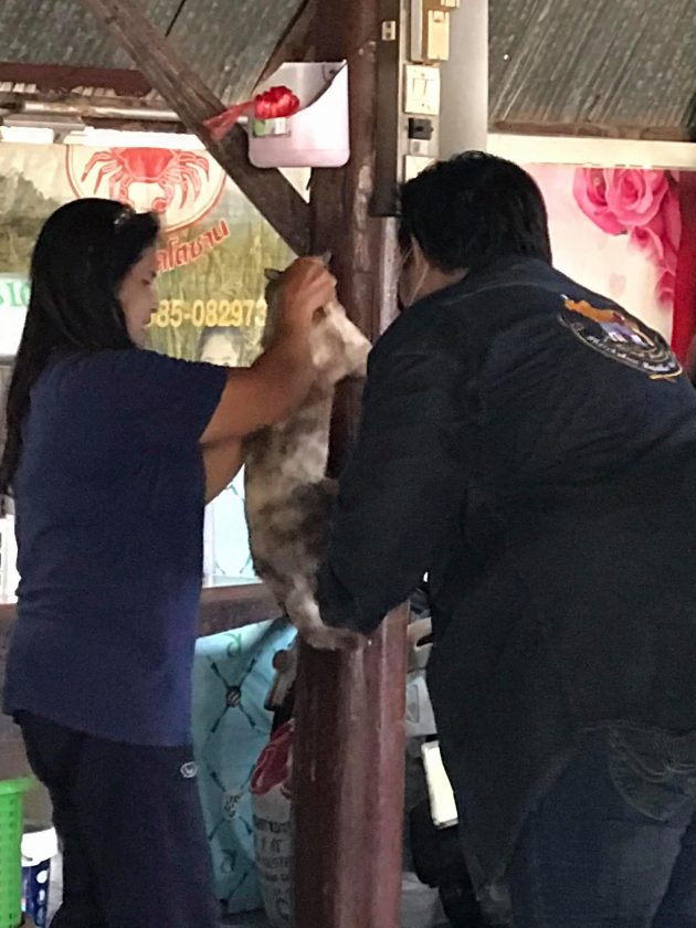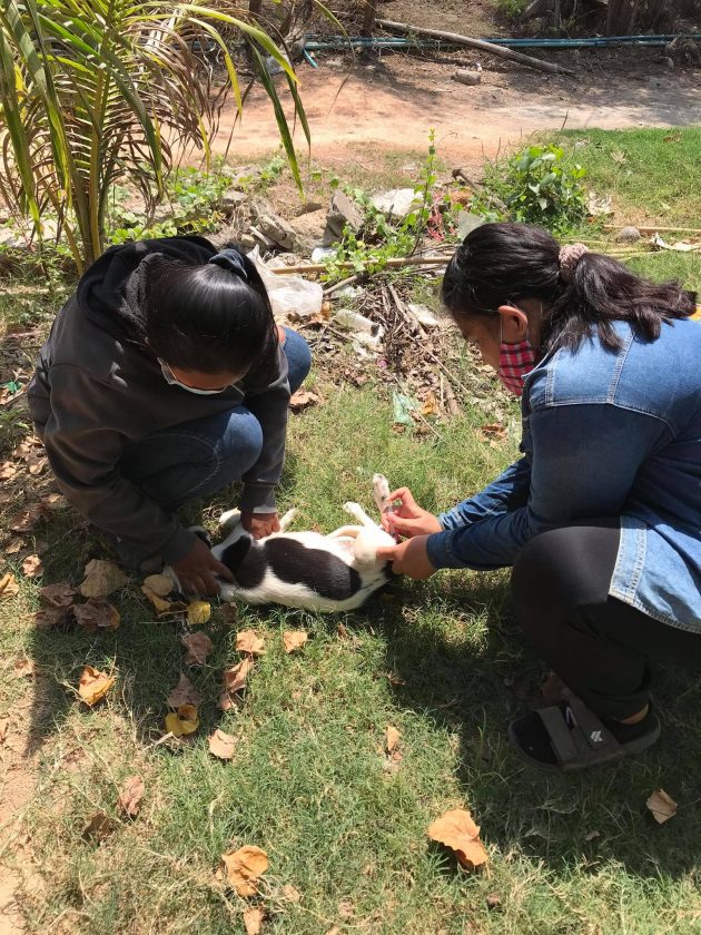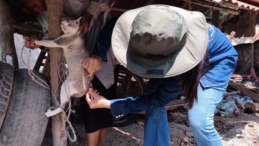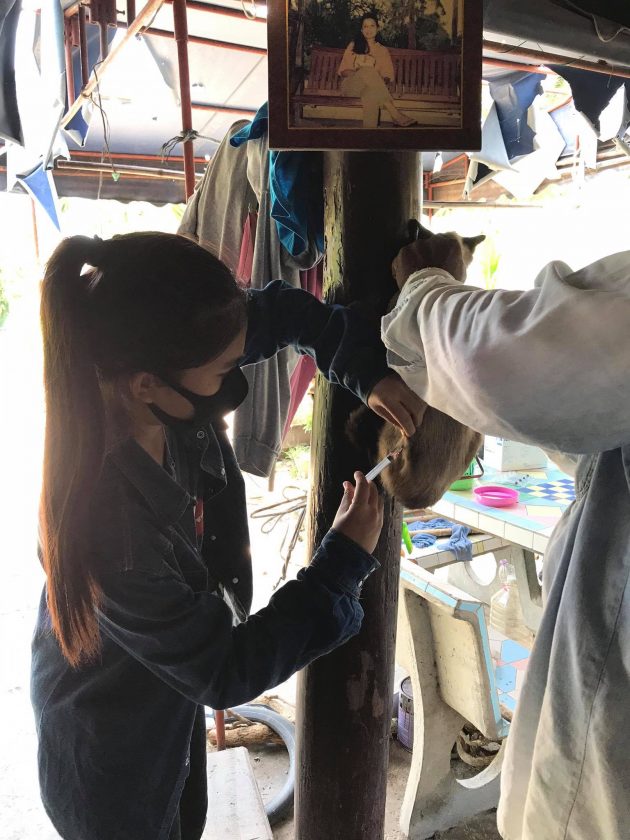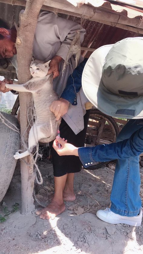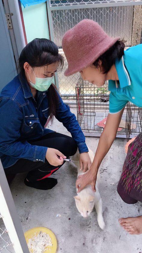 นักศึกษาสาขาวิชาสัตวศาสตร์ ออกให้บริการฉีดวัคซีนป้องกันโรคพิษสุนัขบ้าในสุนัขและแมว