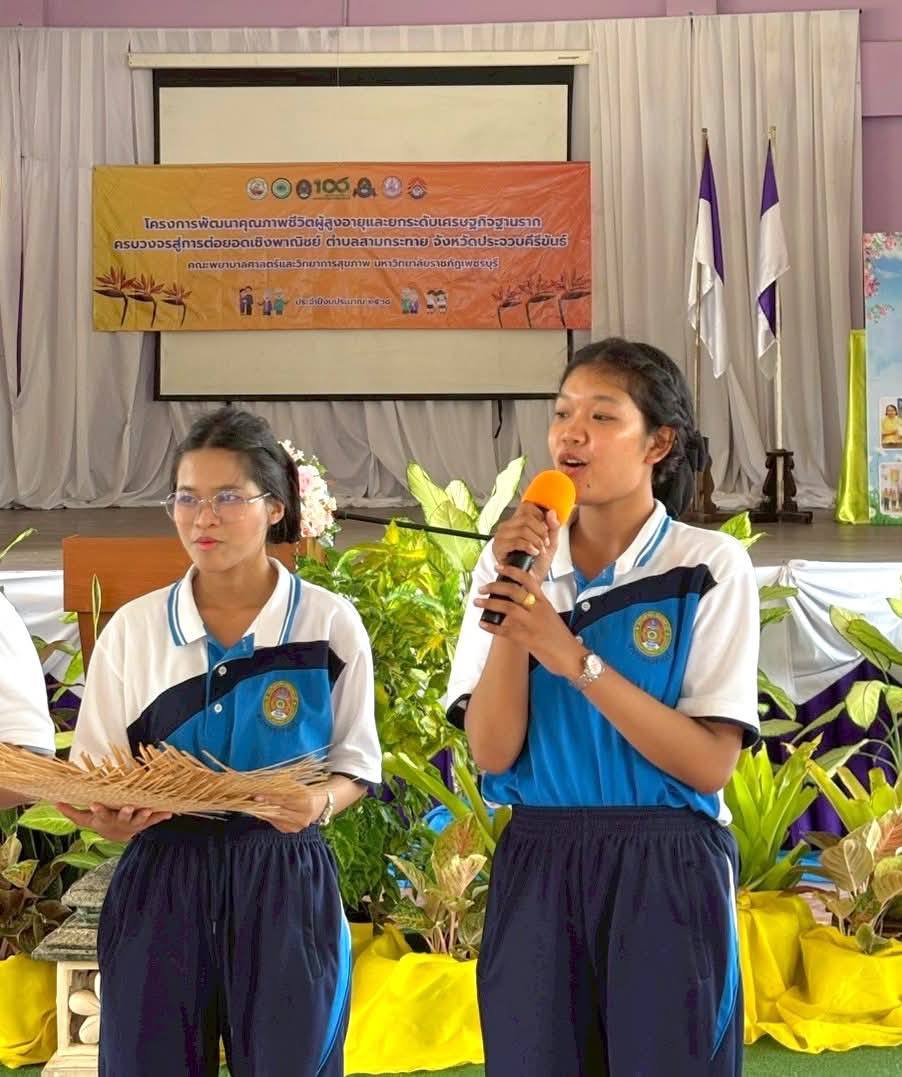คณะพยาบาลศาสตร์และวิทยาการสุขภาพ จัดกิจกรรมที่ 2 Age Well Boost เสริมพลังสาม All เพื่อสังคมสูงวัย 26 พฤษภาคม 202526 พฤษภาคม 2025piyanunข่าวประชาสัมพันธ์, ข่าวสำหรับนักศึกษา, ข่าวสำหรับบุคลากร, ข่าวสื่อสารองค์กร จำนวนผู้ชม : 8 คณะพยาบาลศาสตร์และวิทยาการสุขภาพ จัดกิจกรรมที่ 2 Age Well Boost เสริมพลังสาม All เพื่อสังคมสูงวัย ผู้ช่วยศาสตราจารย์ เรือเอกหญิง ดร.สุพัตรา นุตรักษ์ คณบดีคณะพยาบาลศาสตร์และวิทยาการสุขภาพ มอบหมายให้ผู้ช่วยศาสตราจารย์ ดร.กิติศักดิ์ รุจิกาญจนรัตน์ ผู้ช่วยคณบดีคณะพยาบาลศาสตร์และวิทยาการสุขภาพ ฝ่ายบริการวิชาการและทำนุบำรุงศิลปวัฒนธรรม พร้อมด้วยอาจารย์ บุคลากรและนักศึกษาคณะพยาบาลศาสตร์และวิทยาการสุขภาพ ดำเนินโครงการพัฒนาคุณภาพชีวิตผู้สูงอายุและยกระดับเศรษฐกิจฐานรากครบวงจรสู่การต่อยอดเชิงพาณิชย์ ตำบลสามกระทาย จังหวัดประจวบคีรีขันธ์ กิจกรรมที่ 2 Age Well Boost เสริมพลังสาม All เพื่อสังคมสูงวัย เมื่อวันที่ 23 พฤษภาคม ที่ผ่านมา ณ หอประชุมโรงเรียนบ้านดอนกลาง ตำบลสามกระทาย อำเภอกุยบุรี จังหวัดประจวบคีรีขันธ์ โดยมีผู้นำชุมชน ผู้สูงอายุ ผู้ดูแลผู้สูงอายุ เข้าร่วมกิจกรรมดังกล่าวมีวัตถุประสงค์เพื่อส่งเสริมสุขภาพและการป้องกันโรค การประยุกต์ภูมิปัญญาท้องถิ่นกับสุขภาพ การคืนข้อมูลสุขภาพชุมชนของประชาชนในชุมชนสามกระทายและกิจกรรมอบรมเชิงปฏิบัติการพัฒนาอาชีพเครื่องจักสานลายเอกลักษณ์เพื่อยกระดับเศรษฐกิจฐานราก Facebook iconFacebookTwitter iconTwitterLINE iconLine