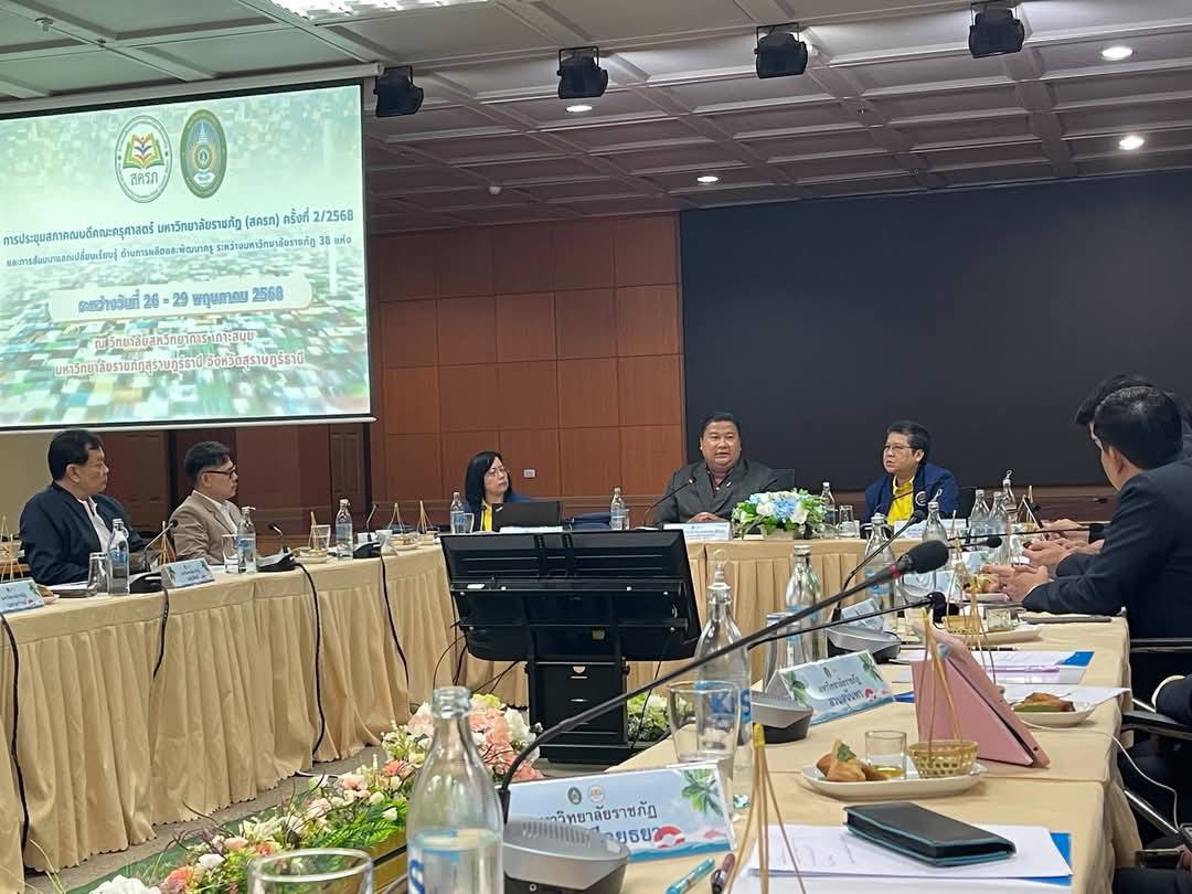 รองศาสตราจารย์ ดร.กาญจนา บุญส่ง คณบดีคณะครุศาสตร์ มหาวิทยาลัยราชภัฏเพชรบุรี มอบหมายให้อาจารย์ ดร.วีรวัฒน์ จันทรัตนะ รองคณบดีคณะครุศาสตร์ เข้าร่วมประชุมสภาคณบดีคณะครุศาสตร์มหาวิทยาลัยราชภัฏ (สครภ.) ครั้งที่ 2/2568 ซึ่งจัดขึ้นระหว่างวันที่ 26 – 29 พฤษภาคม 2568 ณ วิทยาลัยสหวิทยาการ เกาะสมุย มหาวิทยาลัยราชภัฏสุราษฎร์ธานี จังหวัดสุราษฎร์ธานี