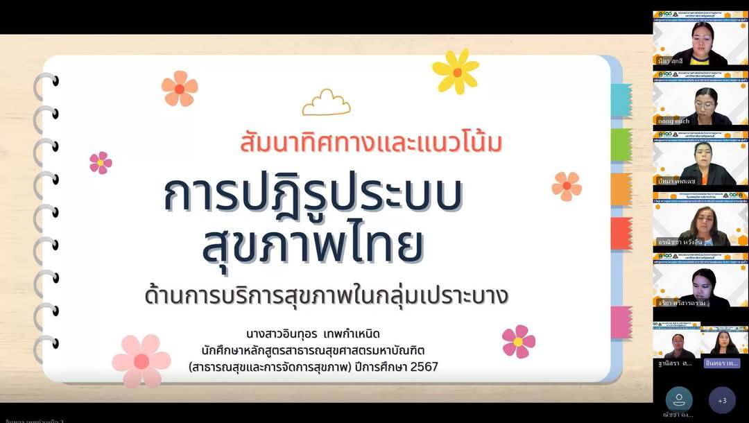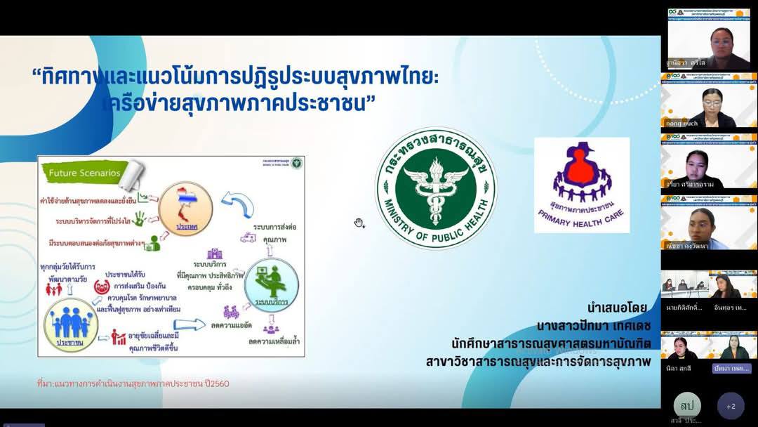 คณะพยาบาลศาสตร์และวิทยาการสุขภาพ จัดสัมมนา “ทิศทางและแนวโน้มในอนาคตการปฏิรูประบบสุขภาพของประเทศไทย” 4 มิถุนายน 20254 มิถุนายน 2025piyanunข่าวประชาสัมพันธ์, ข่าวสำหรับบุคลากร, ข่าวสื่อสารองค์กร จำนวนผู้ชม : 29 คณะพยาบาลศาสตร์และวิทยาการสุขภาพ จัดสัมมนา “ทิศทางและแนวโน้มในอนาคตการปฏิรูประบบสุขภาพของประเทศไทย” วันที่ 1 มิถุนายน 2568 คณะพยาบาลศาสตร์และวิทยาการสุขภาพ จัดกิจกรรมสัมมนาในหัวข้อ “ทิศทางและแนวโน้มในอนาคตการปฏิรูประบบสุขภาพของประเทศไทย” โดยมีวัตถุประสงค์เพื่อเสริมสร้างความรู้ ความเข้าใจ ตลอดจนเปิดมุมมองใหม่ในการบริหารจัดการระบบสุขภาพไทยในอนาคตให้แก่นักศึกษาหลักสูตรสาธารณสุขศาสตรมหาบัณฑิต (สาขาวิชาสาธารณสุขและการจัดการสุขภาพ) ในรายวิชา “ทฤษฎีและหลักการทางสาธารณสุข” ในรูปแบบออนไลน์ ผ่านโปรแกรม Microsoft Team โดยมีคณะผู้บริหารคณะพยาบาลศาสตร์และวิทยาการสุขภาพ เข้าร่วมสำหรับหัวข้อในการสัมมนา ประกอบด้วย1. การบริการสุขภาพในกลุ่มเปราะบางโดย นางสาวอินทุอร เทพกำเหนิด2. เครือข่ายสุขภาพภาคประชาชนโดย นางสาวปัทมา เทศเดช3. สุขภาพจิตและการบำบัดยาเสพติดโดย นางนงนุช อภินันท์อวยพร4. ยกระดับการรักษา 30 บาทโดย นางสาวจริยา ศรีสารคาม5. เศรษฐกิจสุขภาพและการแพทย์โดย นางสาวอรณิชชา หวังอีน6. ทิศทางและแนวโน้มการปฏิรูประบบสุขภาพไทยโดย นางสาวนิดา สุกสี7. สุขภาพดีและการป้องกันโรคโดย นางสาวณัชชา คงวัฒนา8. การบริหารจัดการทรัพยากรสาธารณสุขโดย นางสาวฐานิสรา ศรีใสการสัมมนาในครั้งนี้ถือเป็นเวทีการเรียนรู้ที่สำคัญในการพัฒนาทักษะผู้นำทางวิชาการของนักศึกษาระดับบัณฑิตศึกษา โดยเชื่อมโยงมิติของการวิจัย การวางแผนกลยุทธ์ และการสื่อสารทางสุขภาพ สู่การปฏิบัติจริงอย่างยั่งยืนในอนาคต Facebook iconFacebookTwitter iconTwitterLINE iconLine