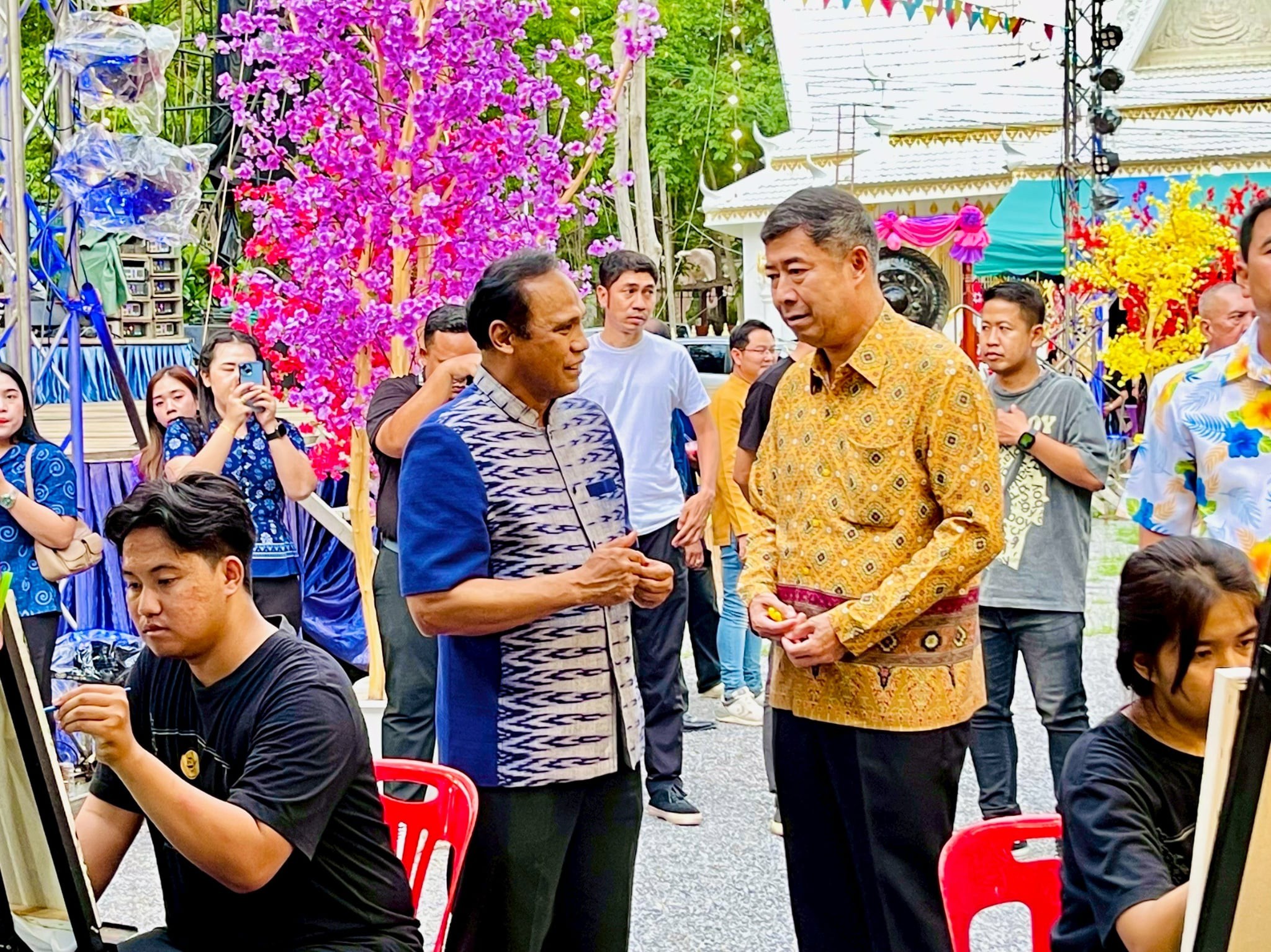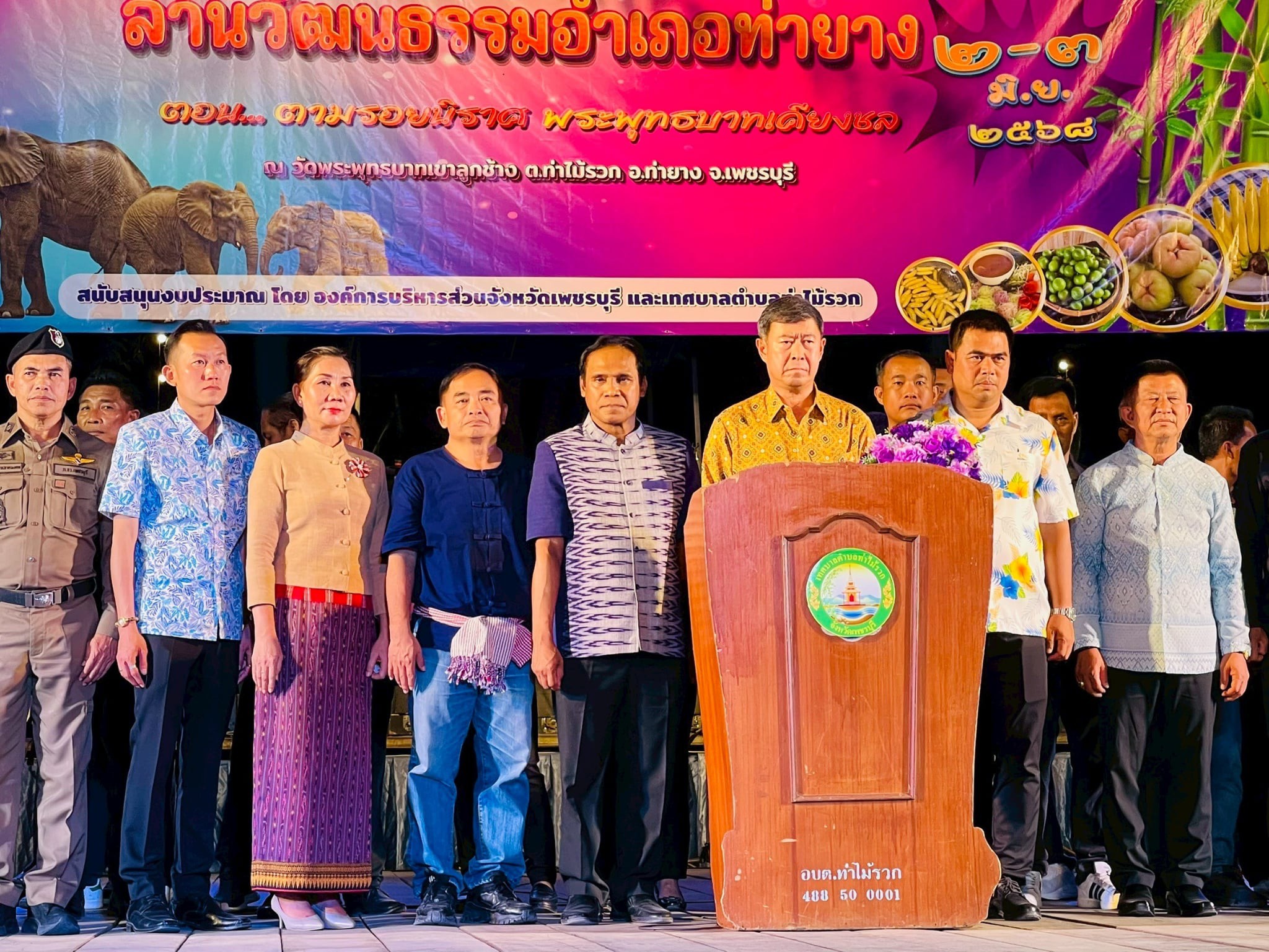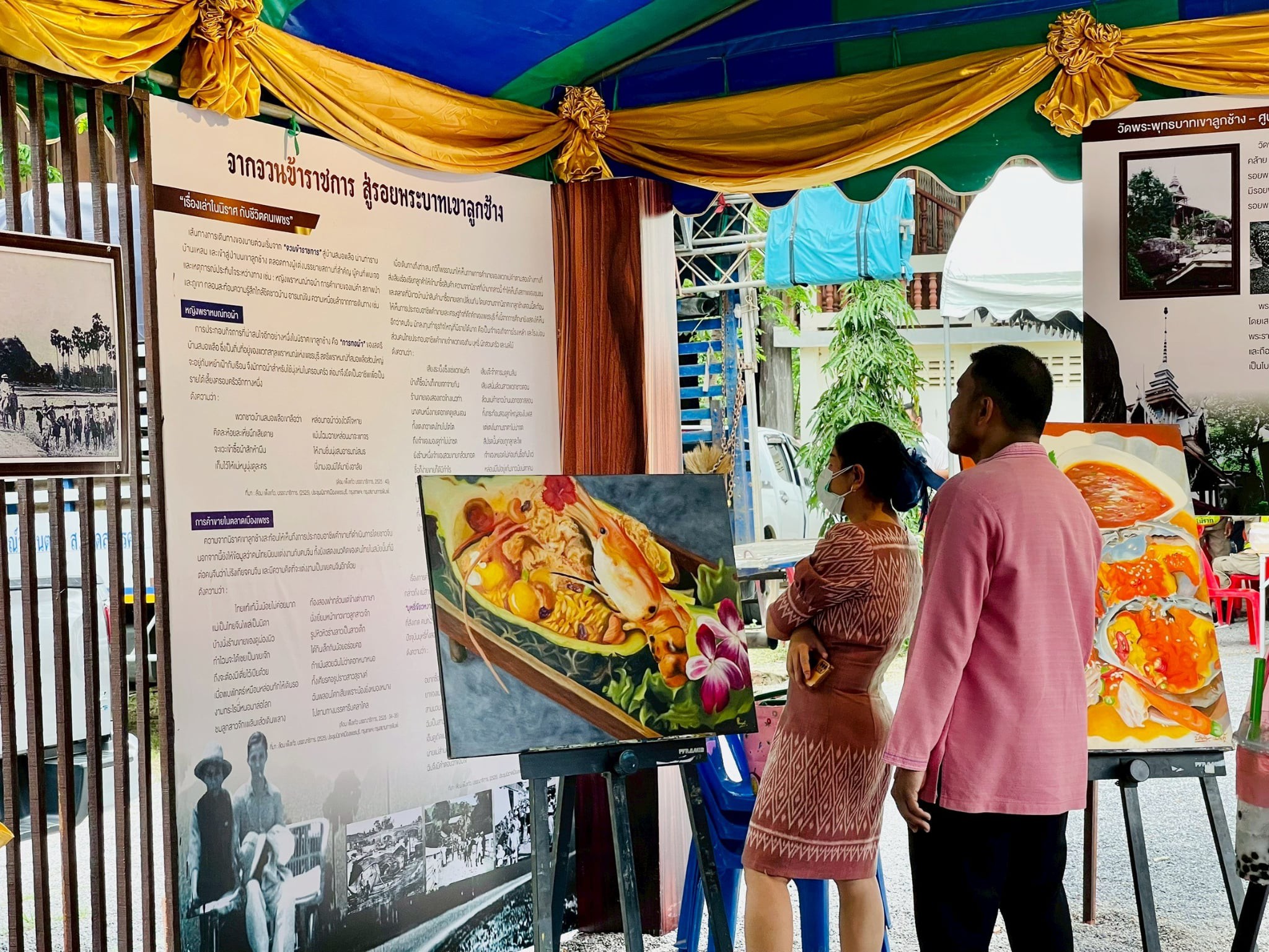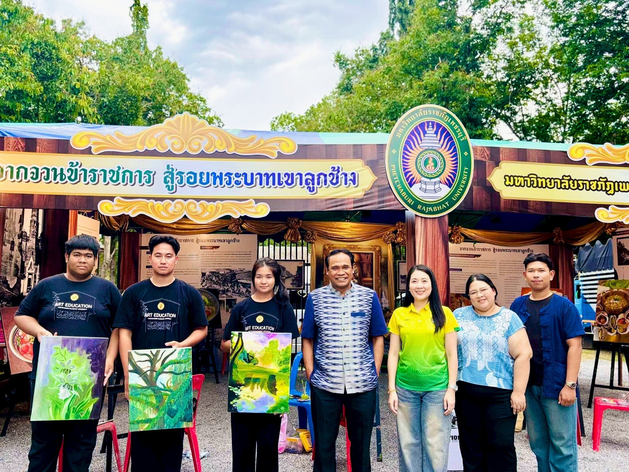 มหาวิทยาลัยราชภัฏเพชรบุรี เข้าร่วมจัดนิทรรศการงานลานวัฒนธรรมอำเภอท่ายาง “ตามรอยนิราศ พระพุทธบาทเคียงชล” 4 มิถุนายน 20254 มิถุนายน 2025piyanunข่าวประชาสัมพันธ์, ข่าวสำหรับบุคลากร, ข่าวสื่อสารองค์กร จำนวนผู้ชม : 10 มหาวิทยาลัยราชภัฏเพชรบุรี เข้าร่วมจัดนิทรรศการงานลานวัฒนธรรมอำเภอท่ายาง "ตามรอยนิราศ พระพุทธบาทเคียงชล" วันที่ 2 มิถุนายน 2568 ณ วัดพระพุทธบาทเขาลูกช้าง อำเภอท่ายาง จังหวัดเพชรบุรี ผู้ช่วยศาสตราจารย์ ดร.เสนาะ กลิ่นงาม อธิการบดีมหาวิทยาลัยราชภัฏเพชรบุรี มอบหมายให้ผู้ช่วยศาสตราจารย์พจนารถ บัวเขียว รองอธิการบดีมหาวิทยาลัยราชภัฏเพชรบุรี ด้านยุทธศาสตร์การพัฒนาท้องถิ่น พร้อมด้วยผู้ช่วยศาสตราจารย์ ดร.วรรณวิภา มัธยมนันท์ รองผู้อำนวยการสถาบันวิจัยและส่งเสริมศิลปวัฒนธรรม บุคลากรงานศิลปวัฒนธรรม และนักศึกษาสาขาวิชาศิลปศึกษา คณะมนุษยศาสตร์และสังคมศาสตร์ เข้าร่วมจัดนิทรรศการ “จากจวนข้าราชการ สู่รอยพระบาทเขาลูกช้าง” และนำเสนอผลงานของนักศึกษาสาขาศิลปศึกษาการจัดงานดังกล่าวจัดขึ้นระหว่างวันที่ 2 – 3 มิถุนายน นี้ ภายในงานพบกับกิจกรรมที่น่าสนใจมากมาย เช่น นิทรรศการศิลปวัฒนธรรมของสภาวัฒนธรรมตำบลทั้ง 12 ตำบล การสาธิตอาหารพื้นบ้านคาว – หวาน ภูมิปัญญาท้องถิ่น และช่างพื้นบ้านของสภาวัฒนธรรมตำบล การจำหน่ายสินค้า ผลิตภัณฑ์ของชุมชนตำบลท่าไม้รวก ตลอดจนการแสดงพื้นบ้าน การแสดงของนักเรียน รำวงย้อนยุค และดนตรีร่วมสมัย Facebook iconFacebookTwitter iconTwitterLINE iconLine