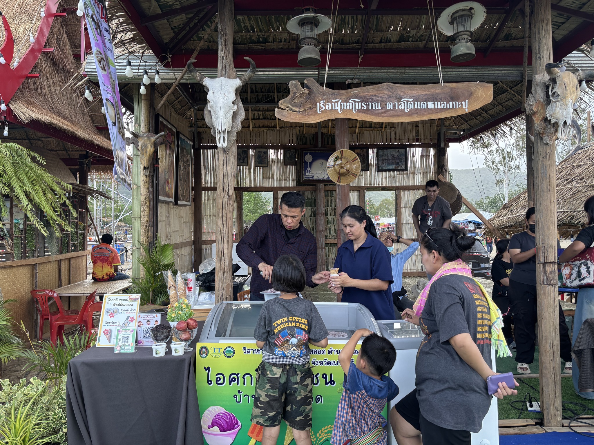 คณะเทคโนโลยีสารสนเทศ เปิดตัวไอศกรีม 3 รสชาติ จากวัตถุดิบชุมชนบ้านโป่งสลอด 4 มิถุนายน 20254 มิถุนายน 2025piyanunข่าวประชาสัมพันธ์, ข่าวสำหรับบุคลากร, ข่าวสื่อสารองค์กร จำนวนผู้ชม : 12 มหาวิทยาลัยราชภัฏเพชรบุรี เข้าร่วมจัดนิทรรศการงานลานวัฒนธรรมอำเภอท่ายาง "ตามรอยนิราศ พระพุทธบาทเคียงชล" ผู้ช่วยศาสตราจารย์พจนารถ บัวเขียว รองอธิการบดีมหาวิทยาลัยราชภัฏเพชรบุรี ด้านยุทธศาสตร์การพัฒนาท้องถิ่นอย่างยั่งยืน พร้อมด้วยอาจารย์ ดร.พีรศุษย์ บุญมาธรรม คณบดีคณะเทคโนโลยีสารสนเทศ ผู้บริหาร อาจารย์และบุคลากรคณะเทคโนโลยีสารสนเทศ ร่วมจัดแสดงผลิตภัณฑ์แปรรูปจากวัตถุดิบในชุมชนจากพื้นที่บริการวิชาการ ภายใต้ยุทธศาสตร์การพัฒนาท้องถิ่น ด้วยการนำไอศกรีม 3 รสชาติจากวัตถุดิบในชุมชนบ้านโป่งสลอด ตำบลหนองกะปุ อำเภอบ้านลาด จังหวัดเพชรบุรี เปิดตัวครั้งแรกในงานวัวเทียมเกวียนและของดีบ้านลาด 108 ปี ตั้งแต่วันที่ 28 พฤษภาคม – 1 มิถุนายน 2568 ได้แก่ รสนมข้าวไรซ์เบอร์รี่น้ำตาลโตนด รสลาเต้กะทิน้ำตาลโตนด และไอศกรีมแท่งรสชาติเสาวรสน้ำตาลโตนด โดยได้รับความสนใจและการตอบรับจากผู้เข้าร่วมงาน ร่วมสนับสนุนสินค้าเป็นจำนวนมาก Facebook iconFacebookTwitter iconTwitterLINE iconLine