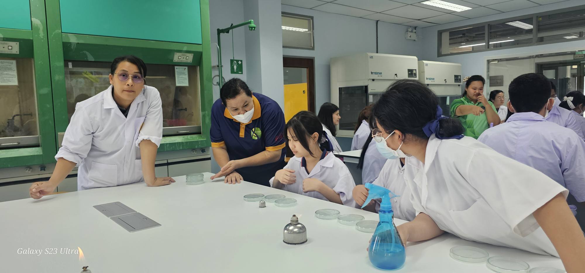 คณะวิทยาศาสตร์และเทคโนโลยี ให้บริการวิชาการด้านวิทยาศาสตร์ เรื่อง“การเตรียมปฏิบัติการจุลชีววิทยา” 9 มิถุนายน 20259 มิถุนายน 2025piyanunข่าวประชาสัมพันธ์, ข่าวสำหรับบุคลากร, ข่าวสื่อสารองค์กร จำนวนผู้ชม : 24 คณะวิทยาศาสตร์และเทคโนโลยี ให้บริการวิชาการด้านวิทยาศาสตร์ เรื่อง“การเตรียมปฏิบัติการจุลชีววิทยา” สาขาวิชาชีววิทยา คณะวิทยาศาสตร์และเทคโนโลยี ให้บริการวิชาการด้วยการจัดกิจกรรมวิทยาศาสตร์ เรื่อง “การเตรียมปฏิบัติการจุลชีววิทยา” ให้แก่คุณครูและนักเรียนชั้นมัธยมศึกษาโรงเรียนวิทยาศาสตร์จุฬาภรณราชวิทยาลัยเพชรบุรี ระหว่างวันที่ 7-8 มิถุนายน 2568 ณ ห้องปฏิบัติการสาขาวิชาชีววิทยา ชั้น 4 อาคารศูนย์วิทยาศาสตร์และวิทยาศาสตร์ประยุกต์ มหาวิทยาลัยราชภัฏเพชรบุรี โดยได้รับเกียรติจากผู้ช่วยศาสตราจารย์ณรงค์ ไกรเนตร์ คณบดีคณะวิทยาศาสตร์และเทคโนโลยี ร่วมให้การต้อนรับผู้เข้าอบรมกิจกรรมในครั้งนี้มีการให้ความรู้ในเรื่องเทคนิคการเพาะเลี้ยงจุลินทรีย์ และการทดสอบฤทธิ์ต้านจุลินทรีย์ โดยมีอาจารย์สุพิตา พูลสมบัติ และอาจารย์จันทนา ก่อนเก่า พร้อมด้วยบุคลากรและนักศึกษาสาขาชีววิทยา ร่วมเป็นวิทยากร Facebook iconFacebookTwitter iconTwitterLINE iconLine