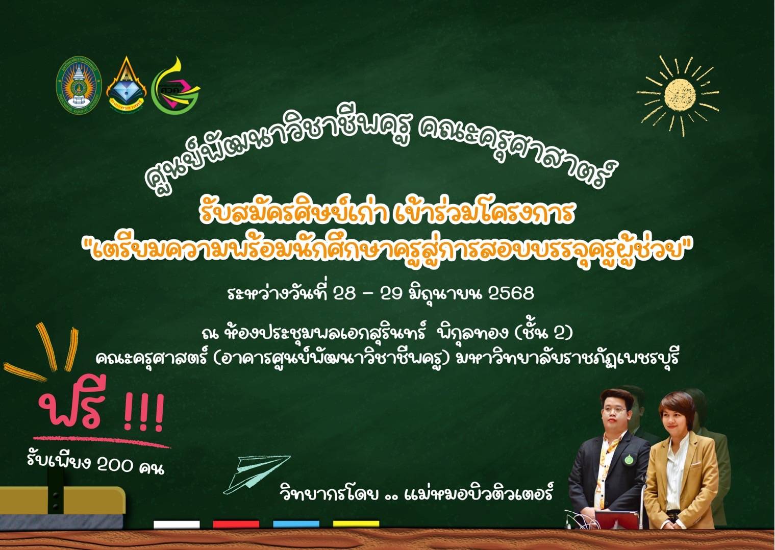 ศูนย์พัฒนาวิชาชีพครู คณะครุศาสตร์ ได้จัดโครงการเตรียมความพร้อมนักศึกษาครูสู่การสอบบรรจุครูผู้ช่วย ระหว่างวันที 28-29 มิถุนายน 2568 10 มิถุนายน 202516 มิถุนายน 2025piyanunข่าวประชาสัมพันธ์, ข่าวสำหรับนักศึกษา, ข่าวสำหรับบุคลากร, ข่าวสื่อสารองค์กร จำนวนผู้ชม : 19 ศูนย์พัฒนาวิชาชีพครู คณะครุศาสตร์ ได้จัดโครงการเตรียมความพร้อมนักศึกษาครูสู่การสอบบรรจุครูผู้ช่วย ระหว่างวันที 28-29 มิถุนายน 2568 ศูนย์พัฒนาวิชาชีพครู คณะครุศาสตร์ ได้จัดโครงการเตรียมความพร้อมนักศึกษาครูสู่การสอบบรรจุครูผู้ช่วย ระหว่างวันที 28-29 มิถุนายน 2568 ณ ห้องประชุมพลเอกสุรินทร์ พิกุลทอง (ชั้น 2) คณะครุศาสตร์ (อาคารศูนย์พัฒนาวิชาชีพครู) มหาวิทยาลัยราชภัฏเพชรบุรี⚠️⚠️⚠️ โดยรับจำนวนจำกัด เพียง 200 คน เท่านั้น ลทบ. ได้ตั้งแต่วันนี้ ถึง วันที่ 22 มิถุนายน 2568 หรือ จนกว่าจะเต็ม👉🏻👉🏻👉🏻 สมัครได้ที่ https://forms.gle/quKPPXLNjTQnanH27 Facebook iconFacebookTwitter iconTwitterLINE iconLine