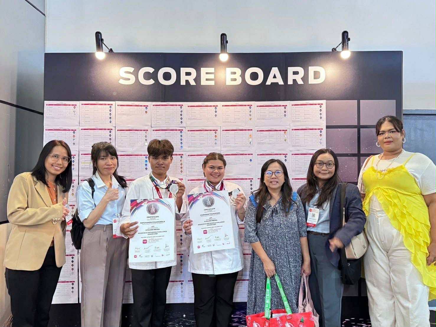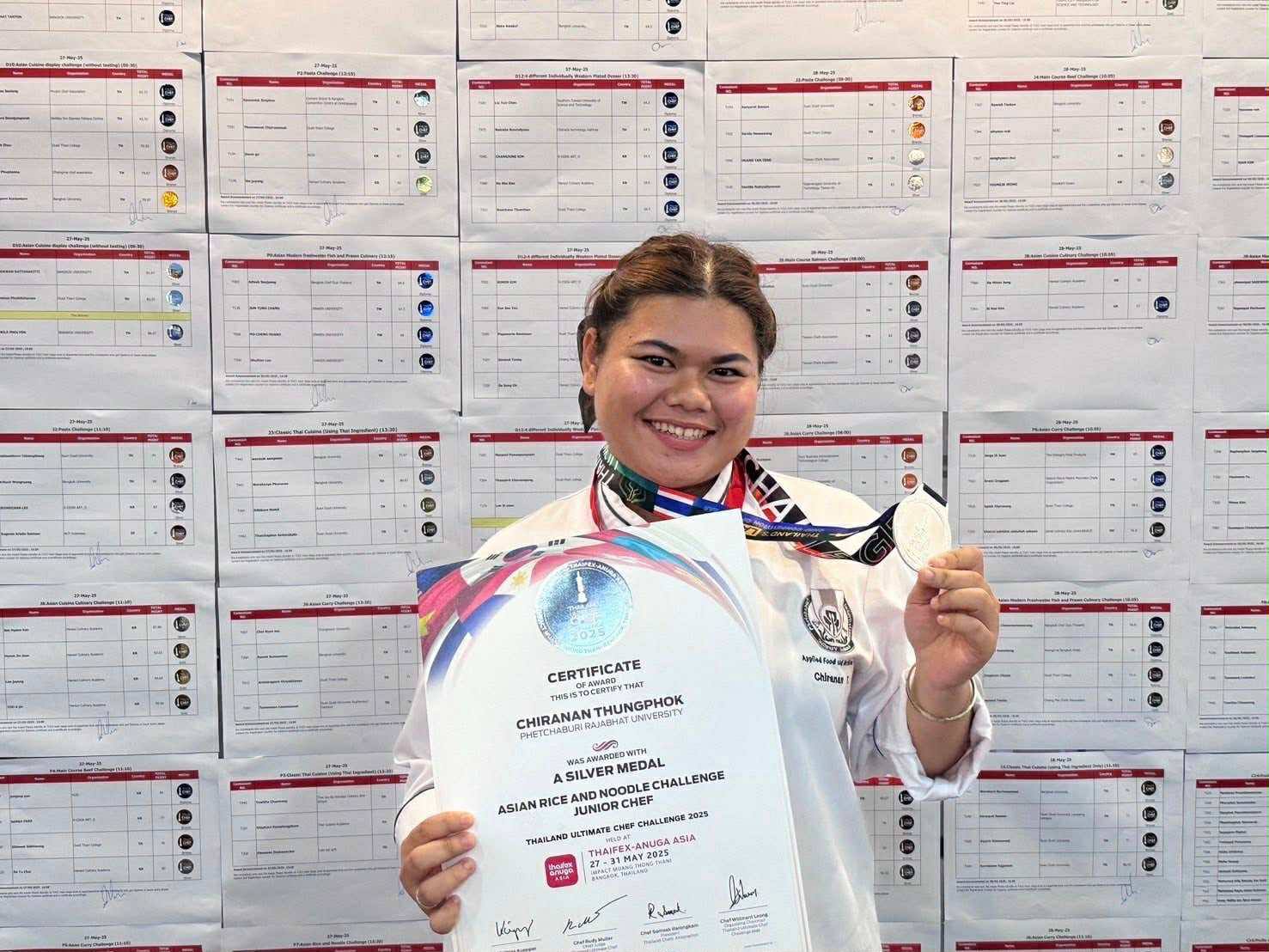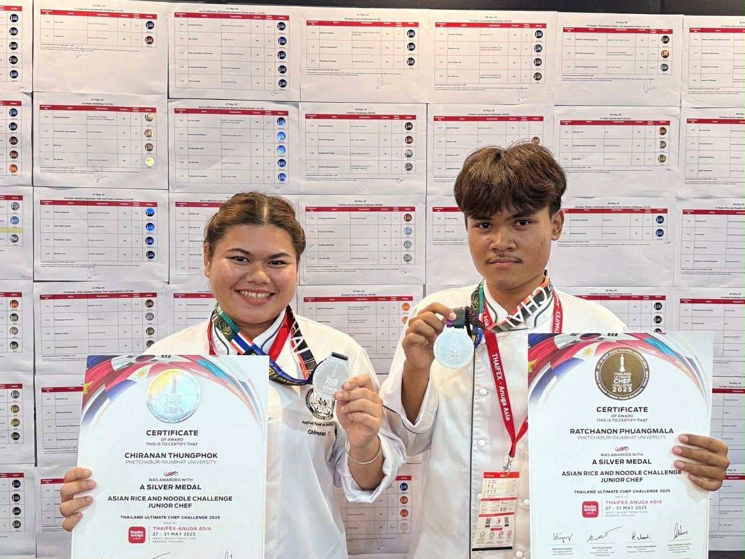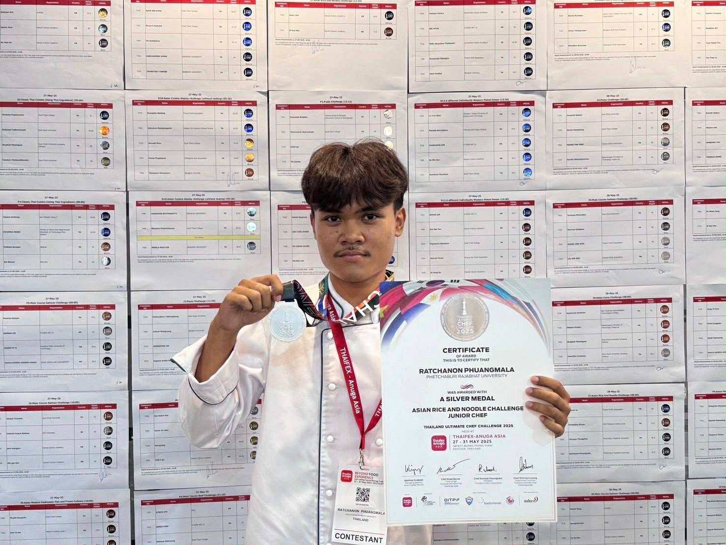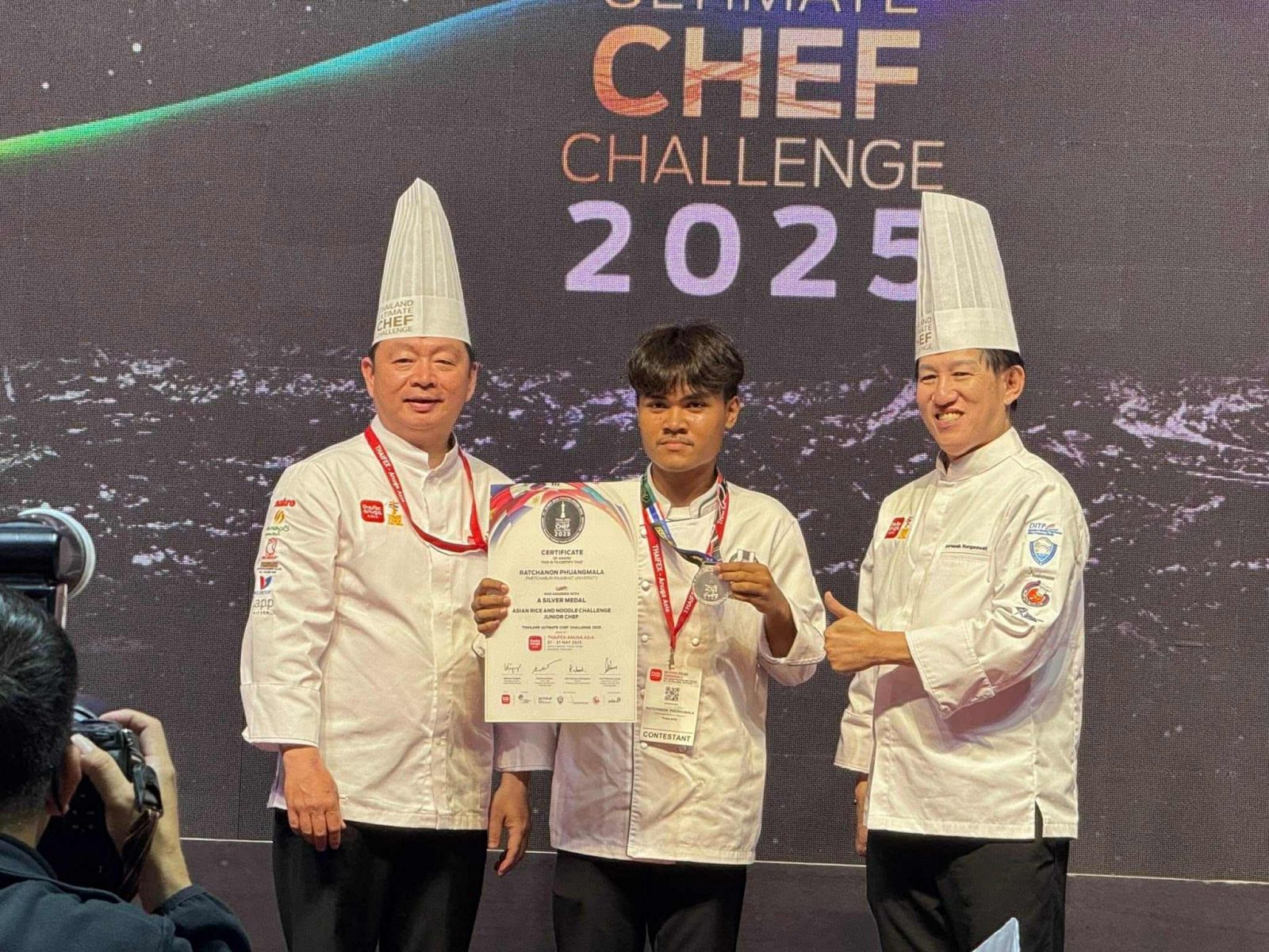 นายรัชชานนท์ พวงมาลา และนางสาวจิรนันท์ ถึงโภค นักศึกษาชั้นปีที่ 3 สาขาวิชาอาหารและโภชนาการประยุกต์ คณะวิทยาศาสตร์และเทคโนโลยี 8 มิถุนายน 202510 มิถุนายน 2025piyanunข่าวประชาสัมพันธ์, ข่าวสำหรับนักศึกษา, ข่าวสำหรับบุคลากร, ข่าวสื่อสารองค์กร จำนวนผู้ชม : 15 นายรัชชานนท์ พวงมาลา และนางสาวจิรนันท์ ถึงโภค นักศึกษาชั้นปีที่ 3 สาขาวิชาอาหารและโภชนาการประยุกต์ คณะวิทยาศาสตร์และเทคโนโลยี ขอแสดงความยินดีกับนายรัชชานนท์ พวงมาลา และนางสาวจิรนันท์ ถึงโภค นักศึกษาชั้นปีที่ 3 สาขาวิชาอาหารและโภชนาการประยุกต์ คณะวิทยาศาสตร์และเทคโนโลยีได้รับรางวัลเหรียญเงิน ในการแข่งขันประเภท Asian Rice and Noodle Challenge ในรายการ Thailand Ultimate Chef Challenge 2025 (TUCC 2025) ซึ่งเป็นหนึ่งในกิจกรรมที่จัดขึ้นในงานแสดงสินค้าอาหารและเครื่องดื่มชั้นนำแห่งเอเชีย THAIFEX-Anuga Asia Beyond Food Experience ณ อิมแพค เมืองทองธานี ระหว่างวันที่ 27 พฤษภาคม – 31 พฤษภาคม ที่ผ่านมา Facebook iconFacebookTwitter iconTwitterLINE iconLine