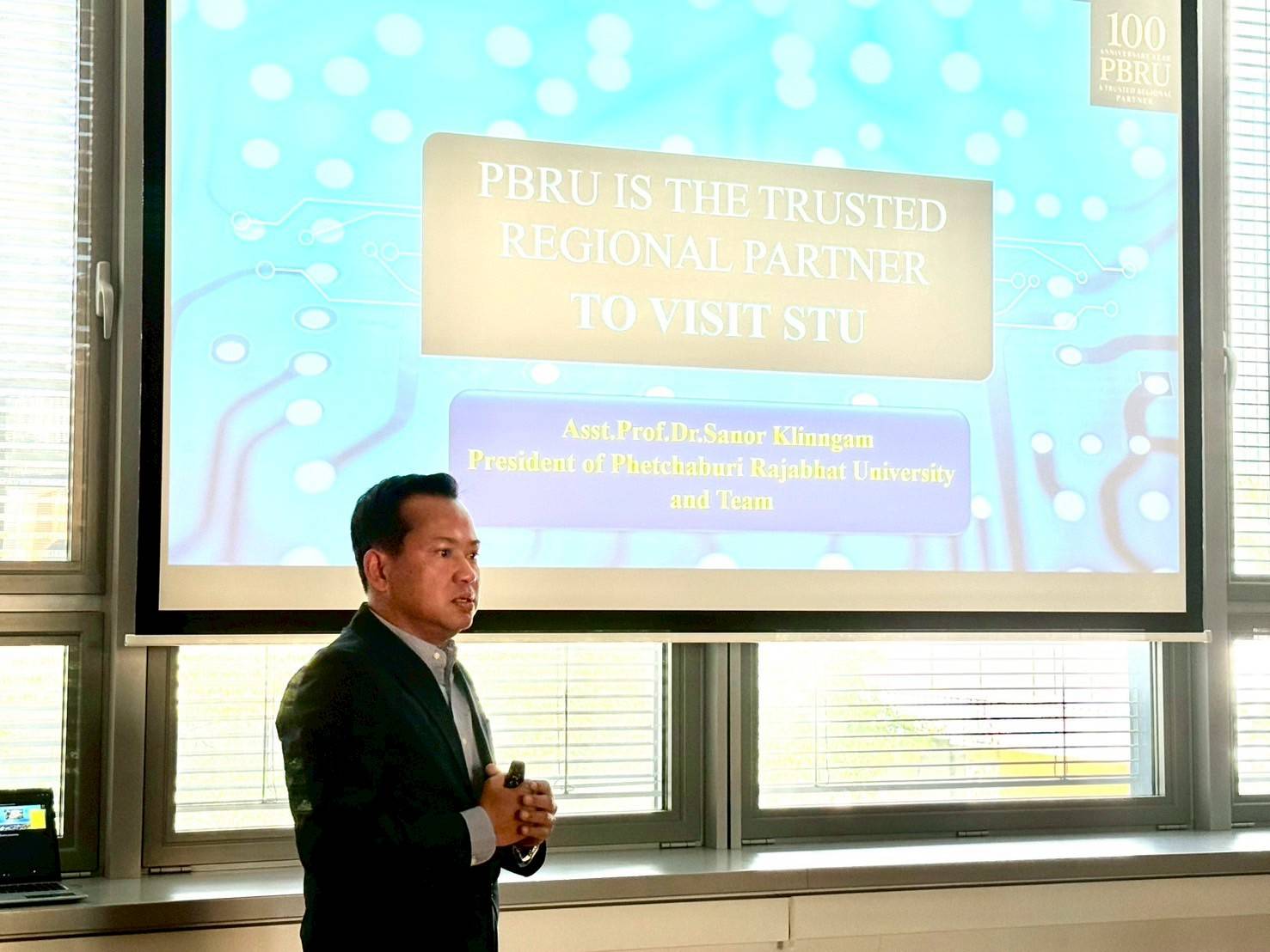 Prof. Ing. Štefan Stanko รองอธิการบดี ได้สรุปเกี่ยวกับ Slovak University of Technology in Bratislava (STU) มหาวิทยาลัยเทคโนโลยีใหญ่สุดในสโลวาเกีย ก่อตั้ง 1937 ตั้งอยู่ใจกลางกรุงบราติสลาวา มี 7 คณะ และ Institute of Management ครอบคลุมวิศวกรรม สถาปัตย์ และ ICT นักศึกษาปัจจุบันราว 11,000–14,000 คน ศิษย์เก่ากว่า 170,000 คนทั่วโลก เป็นมหาวิทยาลัยที่เป็นอันดับหนึ่งด้านเทคโนโลยี และเก่าแก่ที่สุดของประเทศสโลวาเกีย ติด Top 50 % ของโลกในกว่า 120 หัวข้อวิจัย งานวิจัยโดดเด่นด้านวิศวกรรมเครื่องกล คอมพิวเตอร์ ระบบไซเบอร์-กายภาพ พลังงานหมุนเวียน และวิศวกรรมสิ่งแวดล้อม มี Science Park 2 แห่งผลักดันสตาร์ต-อัปและความร่วมมืออุตสาหกรรม บัณฑิตเป็นที่ต้องการสูง ขึ้นชื่อว่ามีอัตราว่างงานหลังจบต่ำและรายได้เฉลี่ยสูงในตลาดแรงงานสโลวัก สะท้อนคุณภาพหลักสูตรและเครือข่ายอุตสาหกรรมแข็งแกร่ง