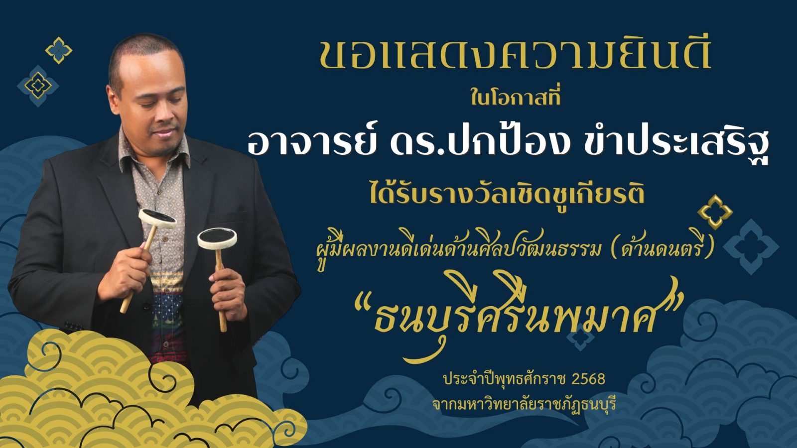 ขอแสดงความยินดีกับอาจารย์ ดร. ปกป้อง ขำประเสริฐ อาจารย์ประจำสาขาวิชาดนตรีศึกษา คณะมมนุษยศาสตร์และสังคมศาสตร์ 23 มิถุนายน 202524 มิถุนายน 2025piyanunข่าวประชาสัมพันธ์, ข่าวสำหรับบุคลากร, ข่าวสื่อสารองค์กร จำนวนผู้ชม : 14 ขอแสดงความยินดีกับอาจารย์ ดร. ปกป้อง ขำประเสริฐ อาจารย์ประจำสาขาวิชาดนตรีศึกษา คณะมมนุษยศาสตร์และสังคมศาสตร์ ในโอกาสได้รับรางวัลเชิดชูเกียรติ ผู้มีผลงานดีเด่นด้านศิลปวัฒนธรรม (ด้านดนตรี) “ธนบุรีศรีนพมาศ” ประจำปีพุทธศักราช 2568 จากมหาวิทยาลัยราชภัฏธนบุรีและรางวัล “เพชรพระนคร ครั้งที่ 7” เชิดชูเกียรติผู้มีผลงานดีเด่นทางด้านวัฒนธรรม ประเภทประชาชนทั่วไป ระดับเหรียญเงิน สาขาดุริยางคศิลป์ ประจำปีพุทธศักราช 2568 Facebook iconFacebookTwitter iconTwitterLINE iconLine
