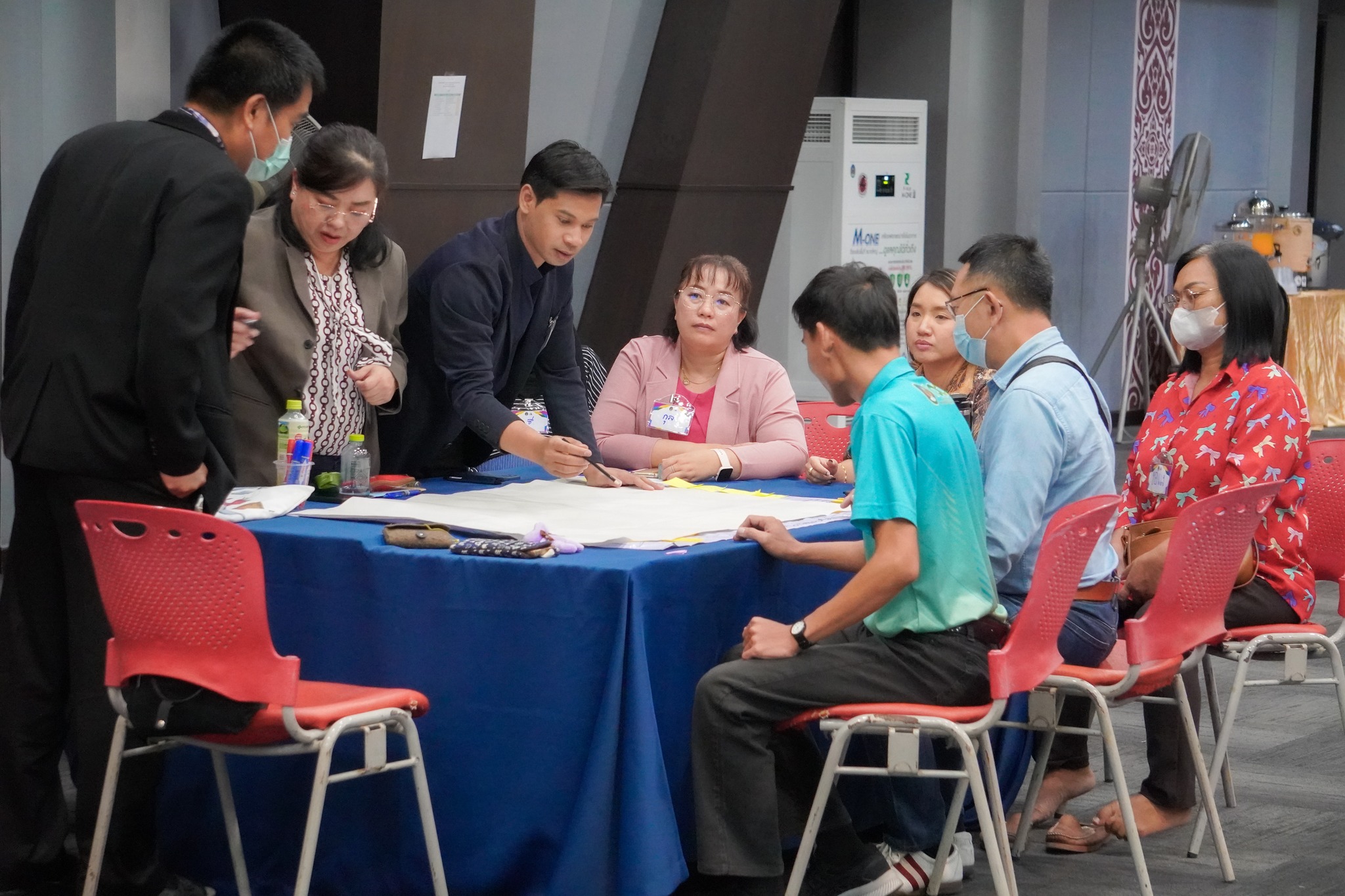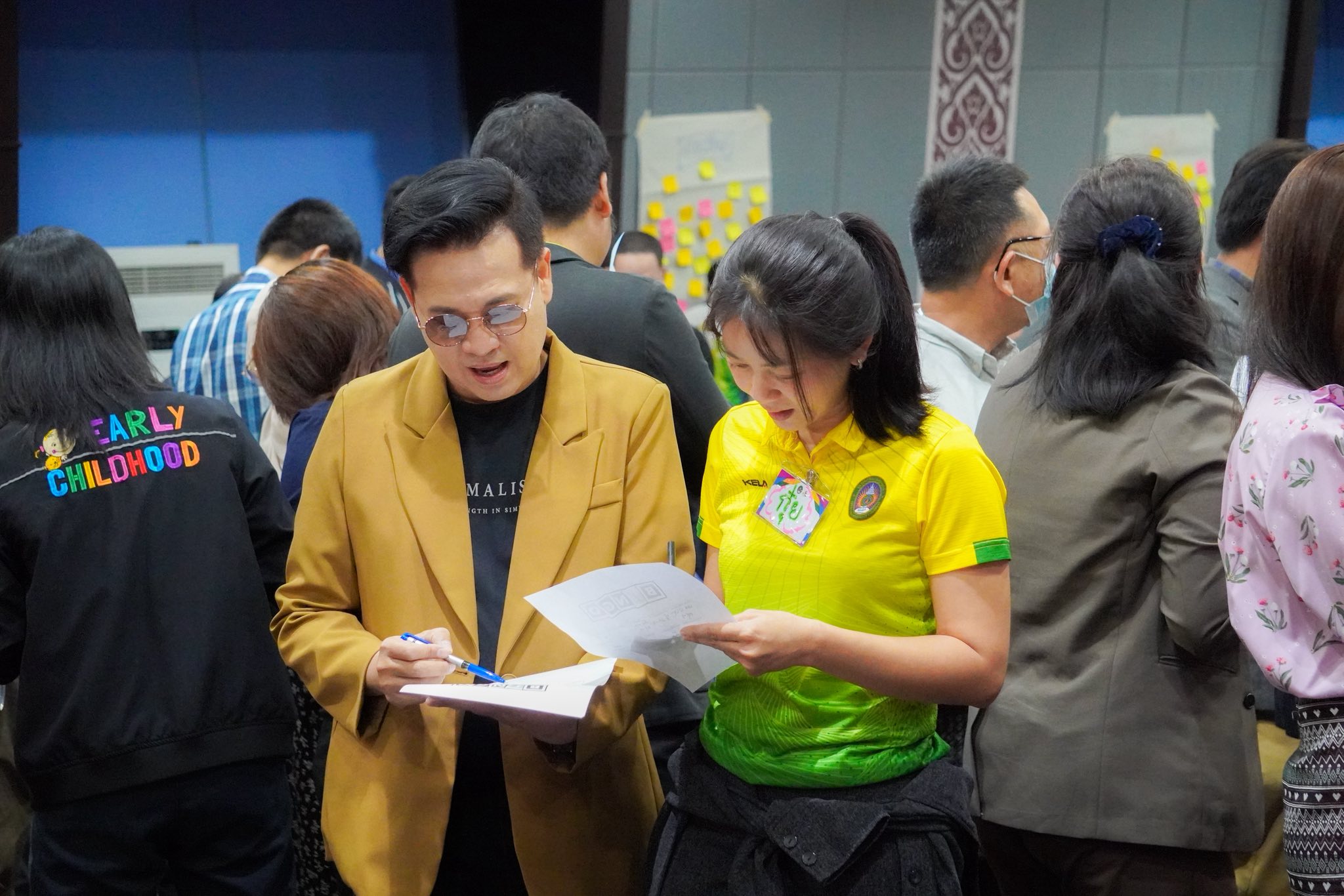 กองพัฒนานักศึกษาจัดอบรมสัมมนาเชิงปฏิบัติการการพัฒนาศักยภาพสู่การเป็นโค้ช ด้วยกระบวนการวิศวกรสังคม 23 มิถุนายน 202524 มิถุนายน 2025piyanunข่าวประชาสัมพันธ์, ข่าวสำหรับบุคลากร, ข่าวสื่อสารองค์กร จำนวนผู้ชม : 28 กองพัฒนานักศึกษาจัดอบรมสัมมนาเชิงปฏิบัติการการพัฒนาศักยภาพสู่การเป็นโค้ช ด้วยกระบวนการวิศวกรสังคม ระหว่างวันที่ 21-22 มิถุนายน 2568 กองพัฒนานักศึกษาจัดอบรมสัมมนาเชิงปฏิบัติการการพัฒนาศักยภาพสู่การเป็นโค้ช ด้วยกระบวนการวิศวกรสังคม ณ ห้องประชุมเอกศักดิ์บุตรลับ อาคารสุเมธตันติเวชกุล โดยมี ดร.เมธาวิน สาระยาน ผู้ช่วยอธิการบดีได้รับมอบหมายจากอธิการบดีเป็นประธานเปิดงานสัมมนาโครงการอบรมสัมมนาเชิงปฏิบัติการการพัฒนาศักยภาพสู่การเป็นโค้ช ด้วยกระบวนการวิศวกรสังคมจัดขึ้นโดยมีวัตถุประสงค์เพื่อพัฒนาทักษะ Soft Skills ด้วยกระบวนการวิศวกรสังคม ส่งเสริมทักษะการเป็นโค้ชที่ดีเพื่อให้บุคลากรสามารถนำความรู้ไปต่อยอดสู่การเป็นโค้ชที่ดีให้กับนักศึกษาได้ โดยได้รับเกียรติจากวิทยากรผู้มีความรู้ด้านวิศวกรสังคม ท่านผู้ช่วยศาสตราจารย์ ดร.วาสนา สังข์พุ่ม คณบดีคณะครุศาสตร์ มหาวิทยาลัยราชภัฏธนบุรี ผู้ช่วยศาสตราจารย์สุทัศน์ กำมณี ผู้ช่วยอธิการบดี มหาวิทยาลัยราชภัฏกาญจนบุรี คุณอเนก ลลิตวสุภิญโญ รักษาการผู้อำนวยการกองพัฒนานักศึกษามหาวิทยาลัยราชภัฏนครปฐมและอาจารย์กรกรต เจริญผล รองคณบดีคณะเทคโนโลยีสารสนเทศ มหาวิทยาลัยราชภัฏเพชรบุรีโดยเนื้อหาในการอบรมนั้นวิทยากรได้ทำการแบ่งกลุ่มผู้เข้าอบรมออกเป็น 4 กลุ่ม ประกอบด้วยกลุ่มที่ 1 “การให้ Feedback และทักษะการโค้ชสำหรับนักวิศวกรสังคม” กลุ่มที่ 2 “ทฤษฎีการอำนวยกระบวนการเรียนรู้” กลุ่มที่ 3 “The Coaching Card” และกลุ่มที่ 4 “วิศวกรสังคม” โดยผู้เข้าอบรมจะได้ทำกิจกรรมกลุ่มร่วมกันซึ่งเป็นกิจกรรมที่บูรณาการศาสตร์ด้านต่างๆ เพื่อให้ง่ายต่อการเรียนรู้ ทำให้ผู้เข้าอบรมสามารถเข้าใจถึงแก่นแท้ของการเป็นโค้ชได้โดยง่ายและหลังจากเสร็จสิ้นการทำกิจกรรมกลุ่ม ผู้เข้าอบรมได้ร่วมกันสรุปองค์ความรู้ที่ได้รับจากการอบรมเพื่อนำความรู้ที่ได้ไปถ่ายทอดให้แก่นักศึกษาต่อไป Facebook iconFacebookTwitter iconTwitterLINE iconLine