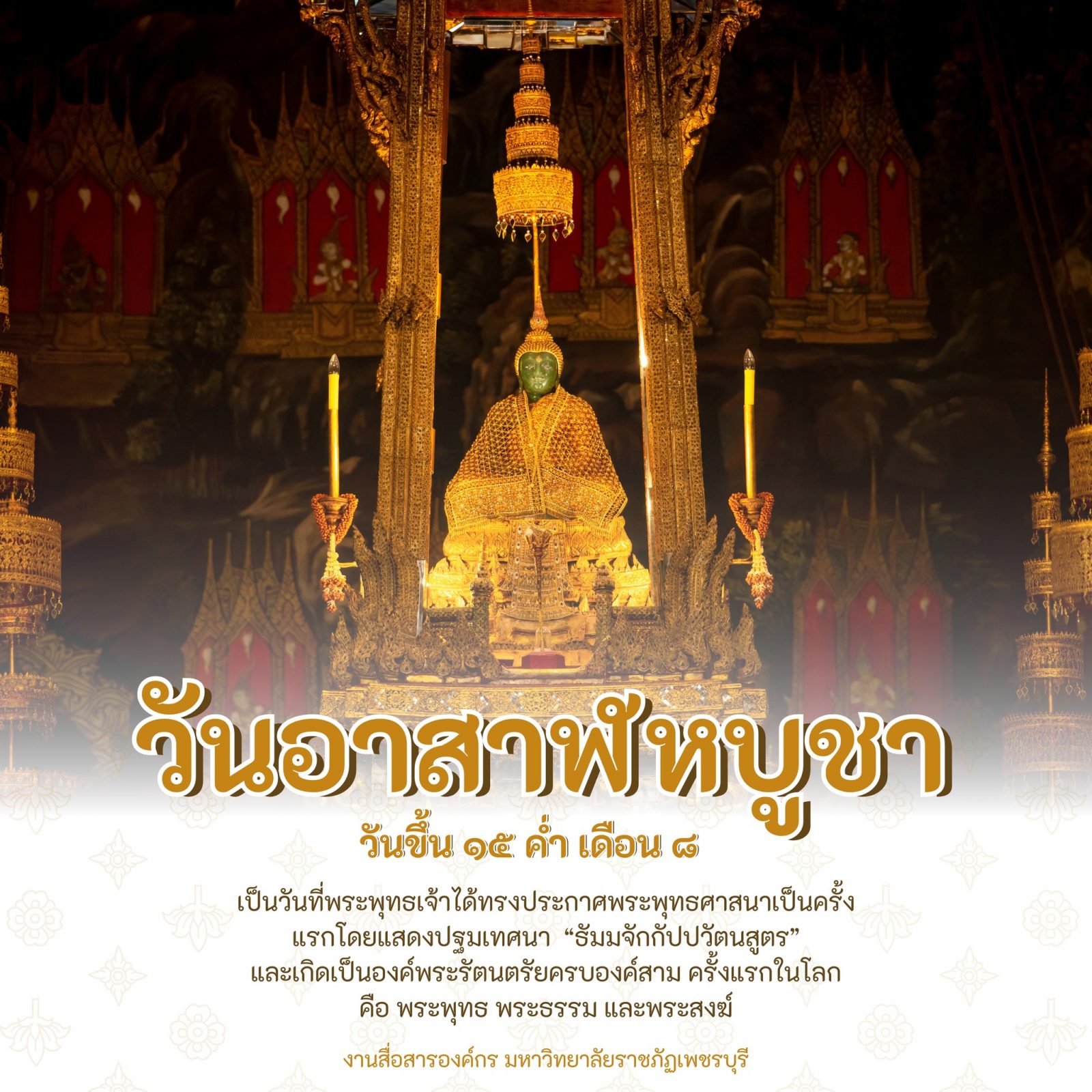 วันอาสาฬหบูชา วันขึ้น ๑๕ ค่ำ เดือน ๘ 10 กรกฎาคม 202515 กรกฎาคม 2025piyanunกิจกรรมนักศึกษา, กิจกรรมโรงเรียนสาธิตฯ, ข่าวประชาสัมพันธ์, ข่าวสำหรับบุคลากร, ข่าวสื่อสารองค์กร จำนวนผู้ชม : 6 วันอาสาฬหบูชา วันขึ้น ๑๕ ค่ำ เดือน ๘ วันอาสาฬหบูชาวันขึ้น ๑๕ ค่ำ เดือน ๘เป็นวันที่พระพุทธเจ้าได้ทรงประกาศพระพุทธศาสนาเป็นครั้งแรกโดยแสดงปฐมเทศนา “ธัมมจักกัปปวัตนสูตร”และเกิดเป็น พระรัตนตรัยครบองค์สาม ครั้งแรกในโลกคือ พระพุทธ พระธรรม และพระสงฆ์ Facebook iconFacebookTwitter iconTwitterLINE iconLine