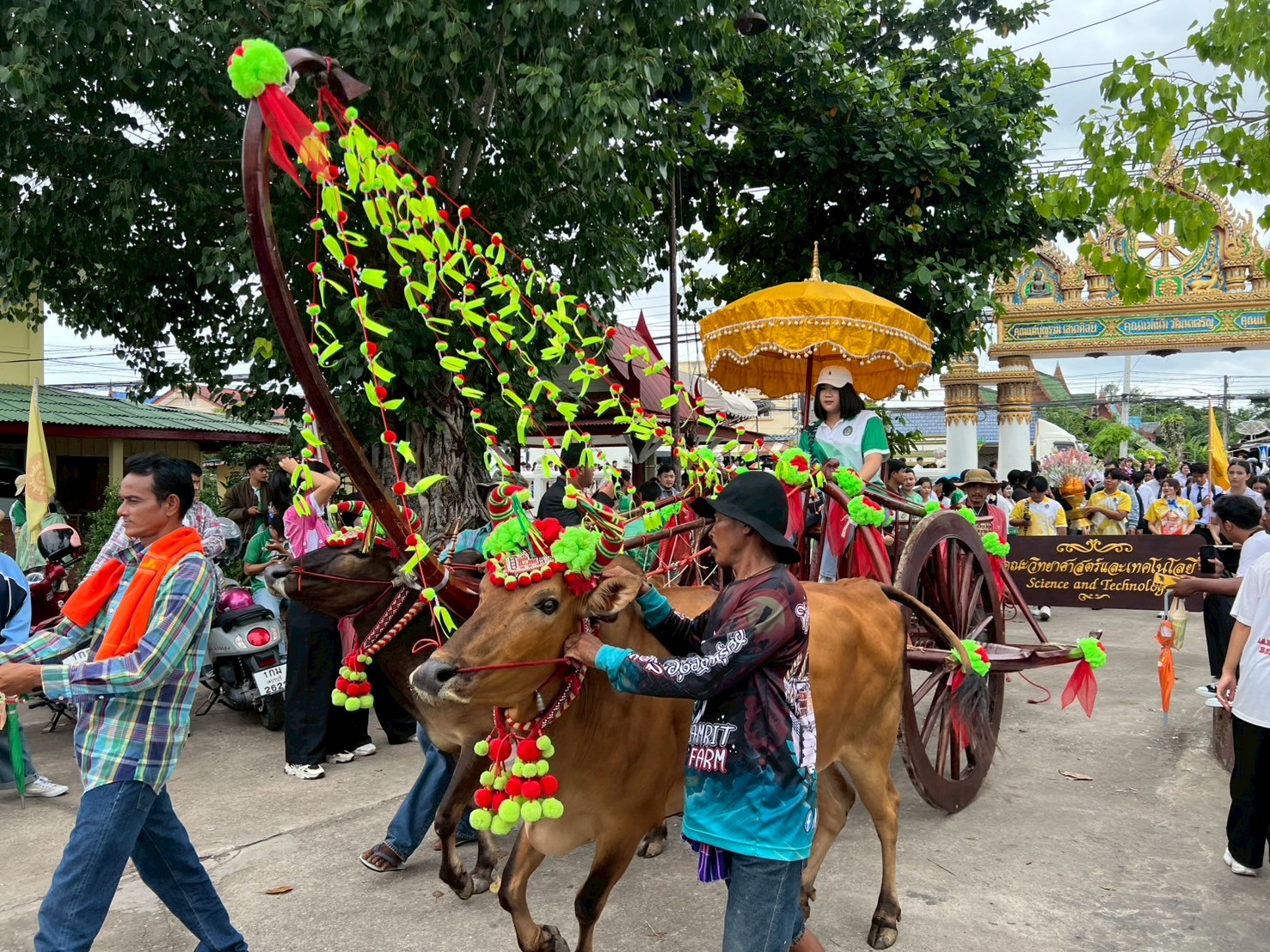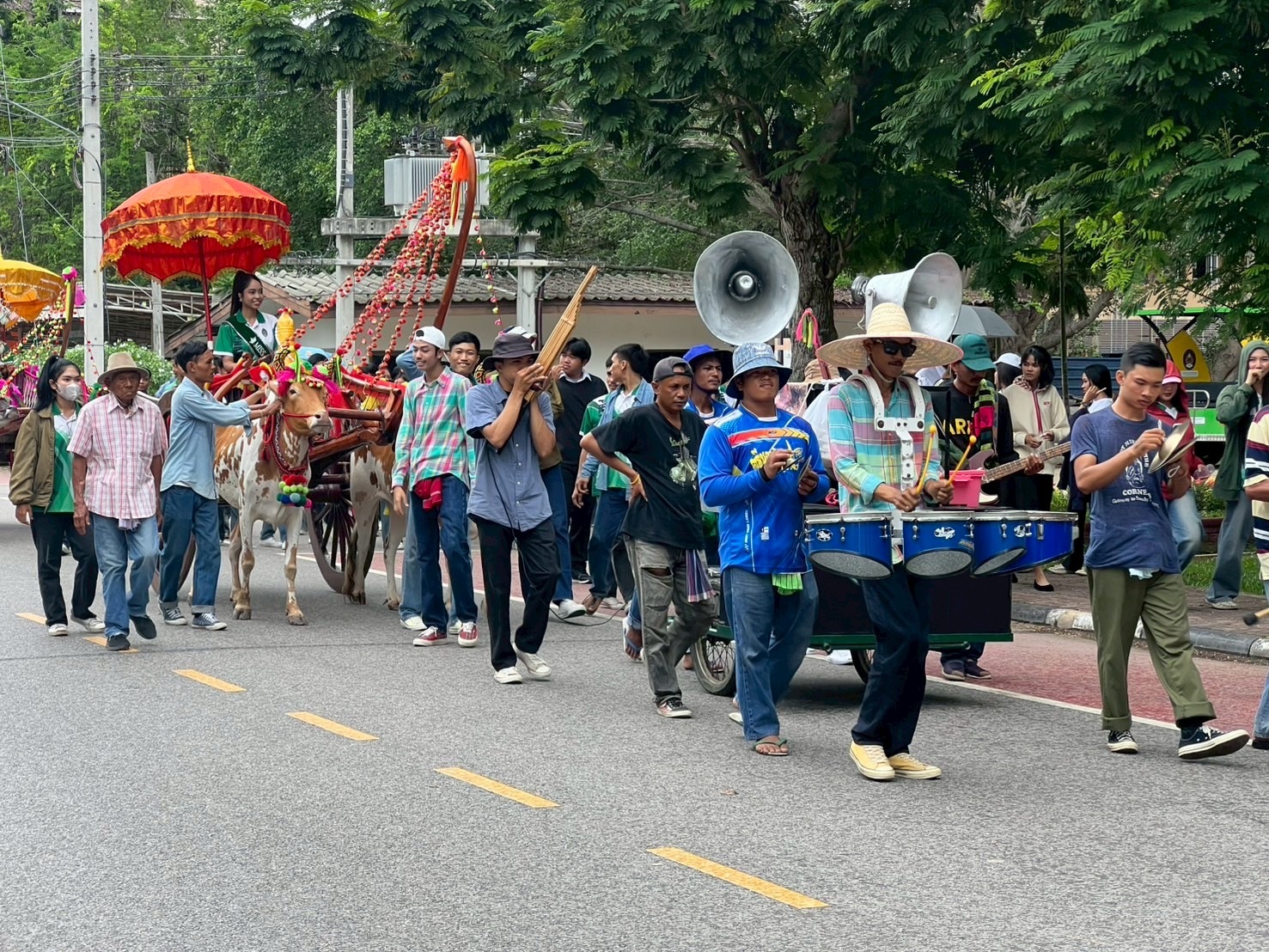 มหาวิทยาลัยราชภัฏเพชรบุรีร่วมถวายเทียนพรรษา สืบทอดประเพณีทางพระพุทธศาสนา 9 กรกฎาคม 202514 กรกฎาคม 2025piyanunข่าวประชาสัมพันธ์, ข่าวสำหรับบุคลากร, ข่าวสื่อสารองค์กร จำนวนผู้ชม : 7 มหาวิทยาลัยราชภัฏเพชรบุรีร่วมถวายเทียนพรรษา สืบทอดประเพณีทางพระพุทธศาสนา วันที่ 9 กรกฎาคม 2568 คณาจารย์ บุคลากรและนักศึกษาคณะเทคโนโลยีการเกษตรร่วมสืบสานประเพณีไทย กับกิจกรรม “เกษตรเทียมเกวียน ถวายเทียนพรรษา” เนื่องในวันอาสาฬหบูชาและวันเข้าพรรษา โดยนำวัวเทียมเกวียนจำนวน 9 เล่ม และแม่ชบากับน้องบุญรอด (ควายคู่แม่ลูก) ที่ตกแต่งอย่างสวยงามมาแห่เทียนพรรษาพร้อมเครื่องไทยธรรม ก่อนนำไปถวายแด่พระภิกษุสงฆ์เพื่อใช้การปฏิบัติธรรมสืบทอดพระพุทธศาสนา ณ วัดเพรียง ตำบลโพไร่หวาน อำเภอเมืองเพชรบุรี จังหวัดเพชรบุรีด้านคณะวิทยาการจัดการ ฝ่ายกิจการนักศึกษาร่วมกับสโมสรนักศึกษา จัดกิจกรรม“สืบสานประเพณีถวายเทียนพรรษา คณะวิทยาการจัดการ ปีการศึกษา 2568” ณ วัดลาดโพธิ์ ตำบลสำมะโรง อำเภอเมืองเพชรบุรี จังหวัดเพชรบุรี โดยการจัดกิจกรรมในครั้งนี้นักศึกษาได้ร่วมสืบสานประเพณีไทยถวายเทียนพรรษาขณะเดียวกัน คณะมนุษยศาสตร์และสังคมศาสตร์ นำโดยรองศาสตราจารย์ ดร.ศุภณัฏฐ์ ทรัพย์นาวิน คณบดีคณะมนุษยศาสตร์และสังคมศาสตร์ นำคณาจารย์ บุคลากรและศึกษา ร่วมถวายเทียนพรรษาพร้อมเครื่องไทยธรรมแด่พระภิกษุสงฆ์วัดใหญ่สุวรรณารามวรวิหาร อำเภอเมืองเพชรบุรี จังหวัดเพชรบุรีการถวายเทียนพรรษา คือ การนำเทียนไปถวายพระสงฆ์ในช่วงเทศกาลเข้าพรรษา เพื่อให้พระสงฆ์ได้จุดบูชาพระรัตนตรัยตลอดระยะเวลา 3 เดือน เป็นประเพณีที่สืบทอดกันมาอย่างยาวนานในพุทธศาสนา เป็นการบูชาพระรัตนตรัย เป็นการให้ทานด้วยแสงสว่าง ซึ่งเชื่อว่าจะทำให้ผู้ถวายได้รับอานิสงส์ คือ ความรุ่งเรือง ความเจริญด้วยปัญญาและความสุข Facebook iconFacebookTwitter iconTwitterLINE iconLine