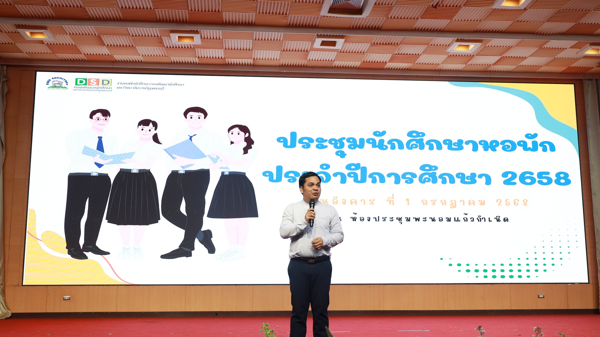 กองพัฒนานักศึกษา จัดประชุมนักศึกษาหอพักประจำปีการศึกษา 2568 3 กรกฎาคม 202516 กรกฎาคม 2025piyanunกิจกรรมนักศึกษา, ข่าวประชาสัมพันธ์, ข่าวสำหรับบุคลากร, ข่าวสื่อสารองค์กร จำนวนผู้ชม : 3 กองพัฒนานักศึกษา จัดประชุมนักศึกษาหอพักประจำปีการศึกษา 2568 วันที่ 1 กรกฎาคม 2568 กองพัฒนานักศึกษาจัดประชุมนักศึกษาหอพักประจำปีการศึกษา 2568 ณ ห้องประชุมพะนอมแก้วกำเนิด อาคารสุเมธตันติเวชกุล โดยได้รับเกียรติจากอาจารย์ ดร.เมธาวิน สาระยาน ผู้ช่วยอฺธิการบดี กล่าวให้โอวาทแก่นักเรียนและนักศึกษาหอพัก ในโอกาสเปิดภาคเรียนที่ 1 ปีการศึกษา 2568 โดยแนะนำแนวทางการใช้ชีวิตในรั้วหอพักของมหาวิทยาลัย การปรับตัวเพื่ออยู่ร่วมกันกับผู้อื่นภายใต้กฎระเบียบของหอพักนักศึกษา จากนั้นนายกิตติภพ รักษาราษฎร์ รักษาการผู้อำนวยการกองพัฒนานักศึกษา ได้บรรยายความรู้ด้านระเบียบวินัย ข้อห้ามและข้อควรปฏิบัติในขณะพักอาศัยในหอพัก พร้อมทั้งแนะนำการให้บริการด้านต่างๆ เพื่อให้นักเรียนสาธิตฯ และนักศึกษาที่พักอาศัยในหอพักของมหาวิทยาลัยมีความเข้าใจสามารถปฏิบัติตนตามกฎระเบียบ และพักอาศัยภายในหอพักอย่างมีความสุข โดยในปีการศึกษา 2568 นี้หอพักนักศึกษามีนักเรียนสาธิตฯ และนักศึกษาเข้าพักอาศัย จำนวน 1,526 คน Facebook iconFacebookTwitter iconTwitterLINE iconLine