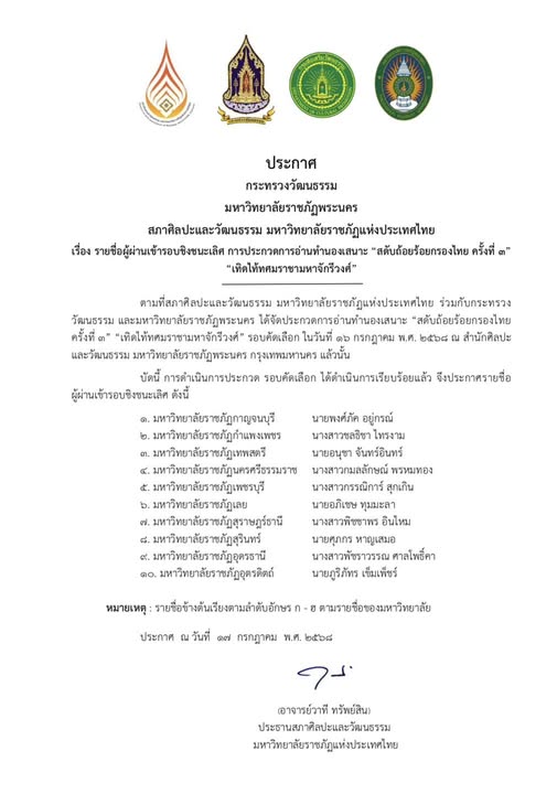 ขอแสดงความยินดีกับนางสาวกรรณิการ์ สุขเกิน นักศึกษาชั้นปีที่ 3 สาขาวิชาภาษาไทย 18 กรกฎาคม 202524 กรกฎาคม 2025piyanunกิจกรรมนักศึกษา, ข่าวประชาสัมพันธ์, ข่าวสื่อสารองค์กร จำนวนผู้ชม : 3 ขอแสดงความยินดีกับนางสาวกรรณิการ์ สุขเกิน นักศึกษาชั้นปีที่ 3 สาขาวิชาภาษาไทยที่ผ่านการประกวดเข้าสู่รอบชิงชนะเลิศในการประกวดอ่านทำนองเสนาะ “สดับถ้อยร้อยกรองไทย ครั้งที่ 3” “เทิดไท้ทศมราชามหาจักรีวงศ์” โดยมีอาจารย์จตุพร บุญประเสริฐ อาจารย์ประจำสาขาวิชาภาษาไทย เป็นอาจารย์ผู้ฝึกซ้อมสำหรับรอบชิงชนะเลิศกำหนดจัดขึ้นในวันที่ 24 กรกฎาคม นี้ ณ มหาวิทยาลัยราชภัฏพระนคร Facebook iconFacebookTwitter iconTwitterLINE iconLine