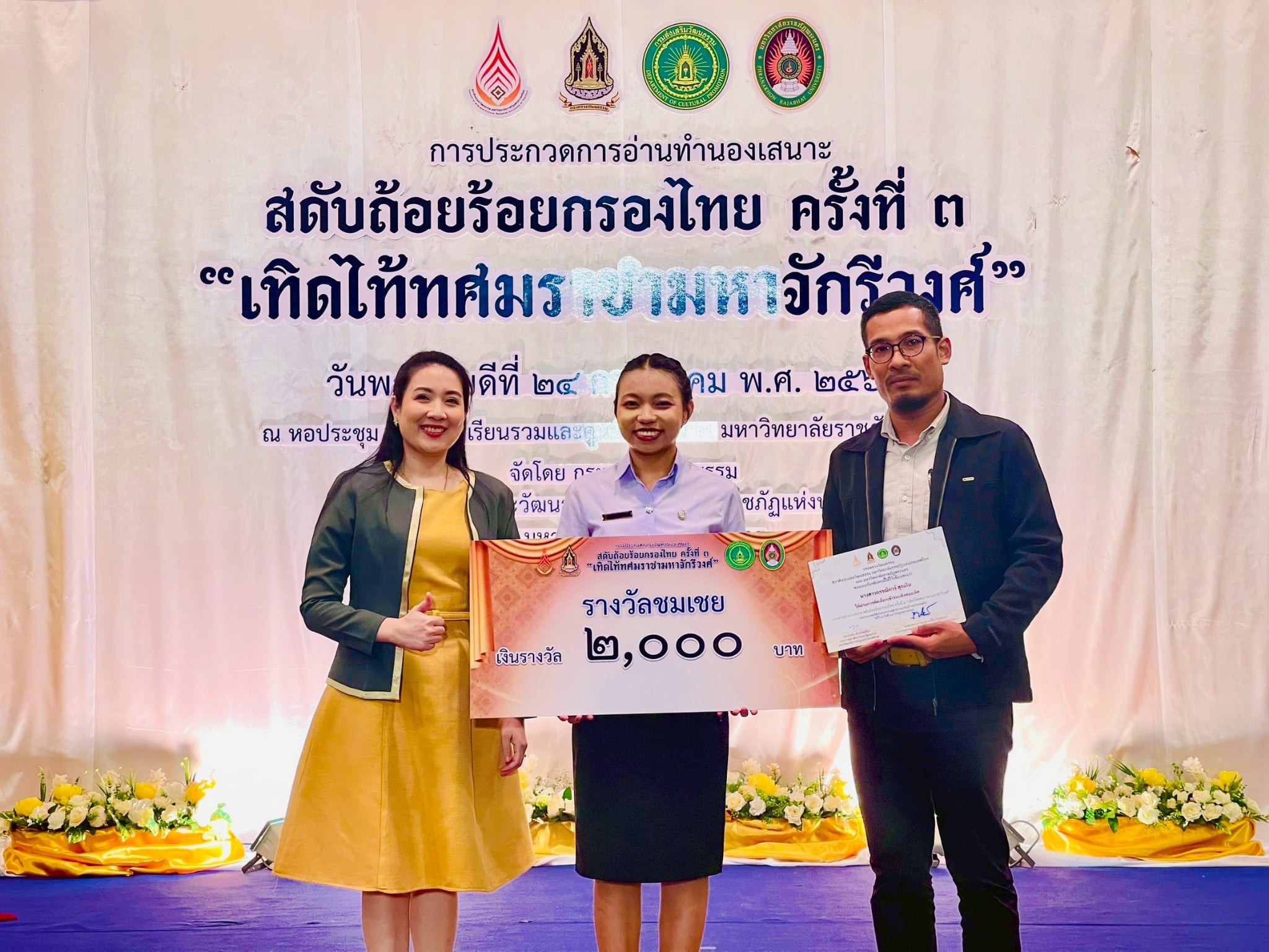 นักศึกษาสาขาวิชาภาษาไทยคว้ารางวัลชมเชย ในการประกวดการอ่านทำนองเสนาะ