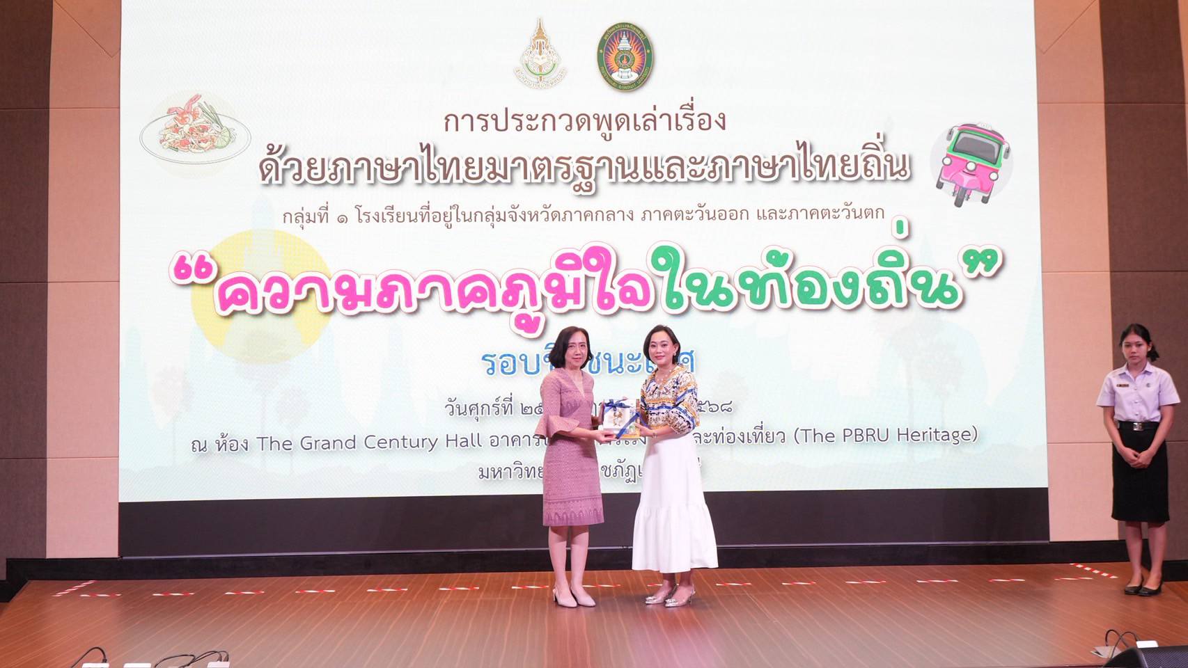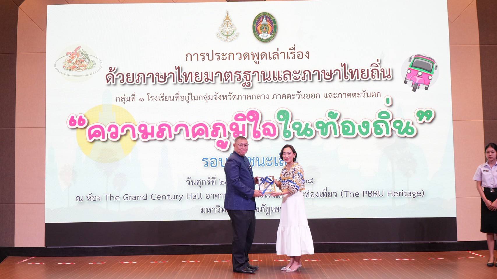 มหาวิทยาลัยราชภัฏเพชรบุรีร่วมกับสำนักงานราชบัณฑิตยสภา จัดประกวดพูดเล่าเรื่องด้วยภาษาไทยมาตรฐานและภาษาไทยถิ่น หัวข้อ "ความภาคภูมิใจในท้องถิ่น" รอบชิงชนะเลิศ