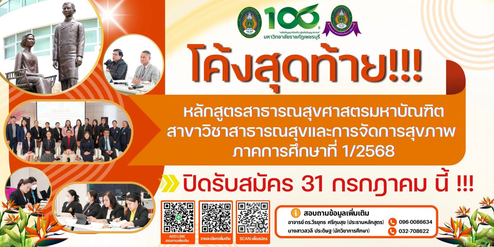 โค้งสุดท้าย หลักสูตรสาธารณสุขศาสตรมหาบัณฑิต สาขาวิชาสาธารณสุขและการจัดการสุขภาพ ภาคการศึกษาที่ 1/2568 สมัครด่วนก่อนปิดรับสมัคร 31 กรกฎาคมนี้