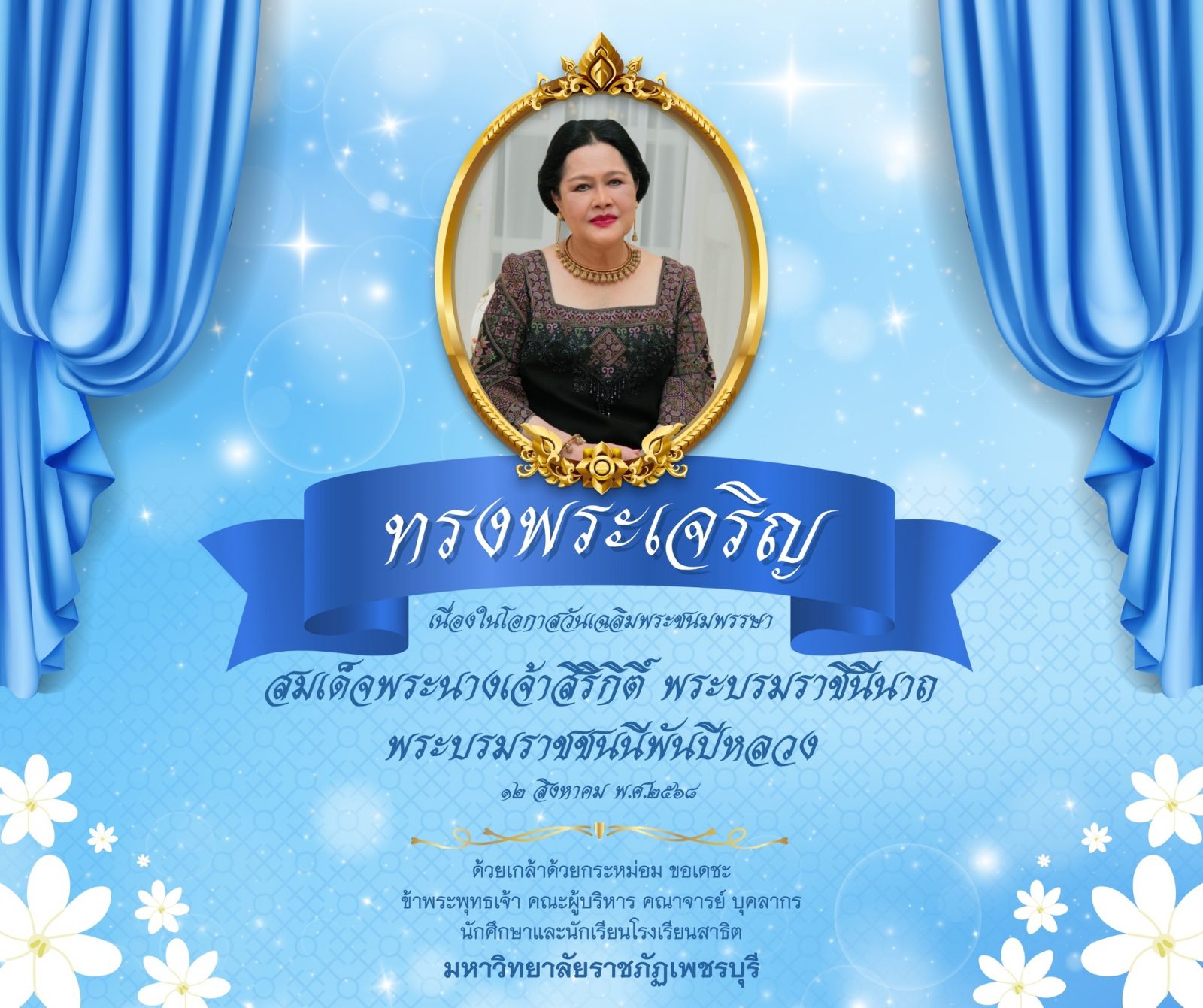 ทรงพระเจริญเนื่องในโอกาสวันเฉลิมพระชนมพรรษาสมเด็จพระนางเจ้าสิริกิติ์ พระบรมราชินีนาถพระบรมราชชนนีพันปีหลวงและวันแม่แห่งชาติ 12 สิงหาคม 202512 สิงหาคม 2025piyanunกิจกรรมนักศึกษา, กิจกรรมโรงเรียนสาธิตฯ, ข่าวประชาสัมพันธ์, ข่าวสำหรับบุคลากร, ข่าวสื่อสารองค์กร จำนวนผู้ชม : 18 ทรงพระเจริญเนื่องในโอกาสวันเฉลิมพระชนมพรรษาสมเด็จพระนางเจ้าสิริกิติ์ พระบรมราชินีนาถพระบรมราชชนนีพันปีหลวงและวันแม่แห่งชาติ ทรงพระเจริญเนื่องในโอกาสวันเฉลิมพระชนมพรรษาสมเด็จพระนางเจ้าสิริกิติ์ พรบรมราชินีนาถพระบรมราชชนนีพันปีหลวงและวันแม่แห่งชาติ๑๒ สิงหาคม ๒๕๖๘_____________________________ด้วยเกล้าด้วยกระหม่อม ขอเดชะข้าพระพุทธเจ้า คณะผู้บริหาร คณาจารย์ บุคลากรนักศึกษาและนักเรียนโรงเรียนสาธิตมหาวิทยาลัยราชภัฏเพชรบุรี Facebook iconFacebookTwitter iconTwitterLINE iconLine