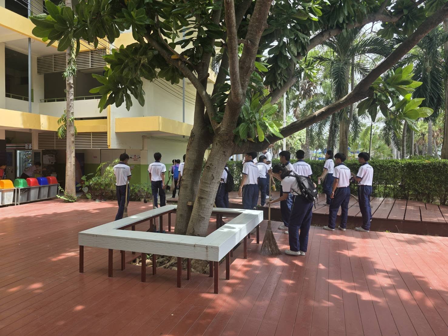 มีจิตอาสาด้วยการมาช่วยทำสวนดอกไม้และกวาดใบไม้