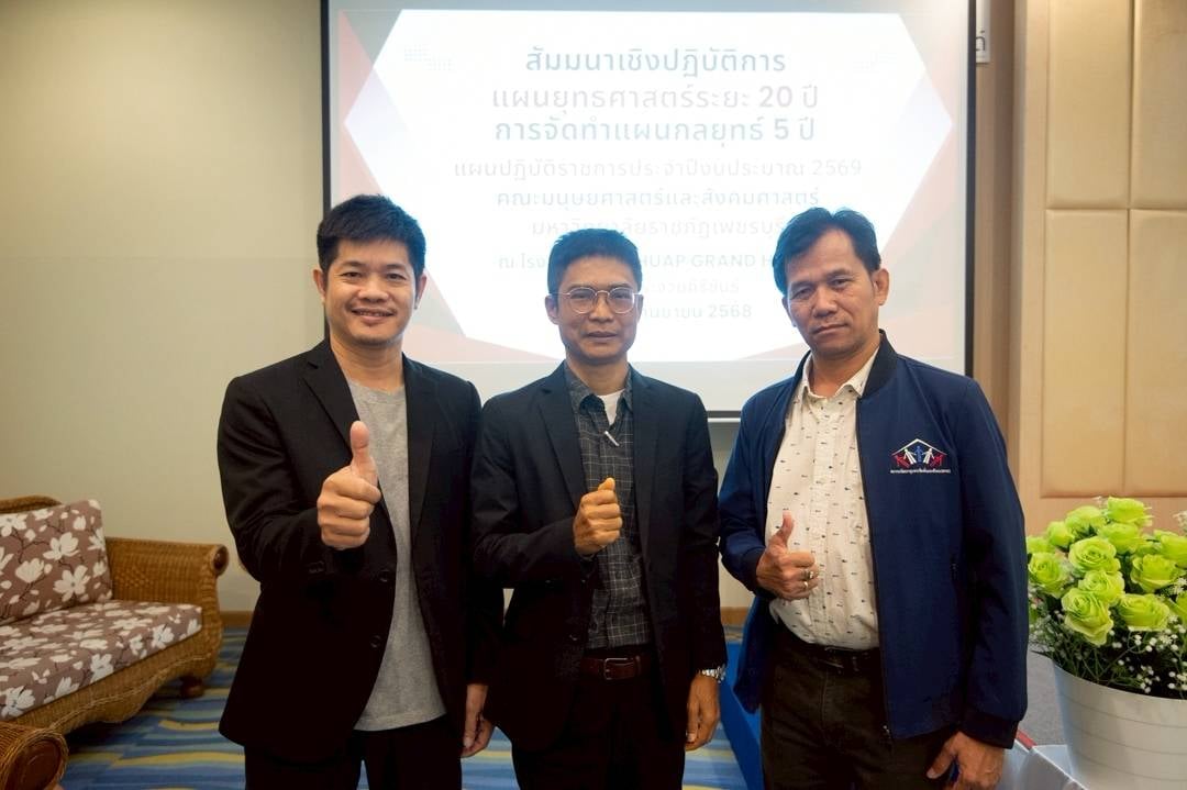 การสัมมนาเชิงปฏิบัติการครั้งนี้ได้รับเกียรติจากนายณัฐวุฒิ เพ็ชรพรหมศร กรรมการสภา ผู้ทรงคุณวุฒิ มหาวิทยาลัยราชภัฏเพชรบุรี ร่วมประชุมเชิงปฏิบัติการและบรรยายในหัวข้อทิศทางมหาวิทยาลัยกับการกำหนดยุทธศาสตร์เชิงพื้นที่ที่ก้าว พ้นความท้าทาย ความเปลี่ยนแปลงต่อการยกระดับขีดความสามารถ เพื่อให้คณาจารย์และบุคลากรทุกฝ่ายมีส่วนร่วมในการจัดทำแผนยุทธศาสตร์ 20 ปี และทบทวนแผนกลยุทธ์ 5 ปีของคณะมนุษยศาสตร์และสังคมศาสตร์
