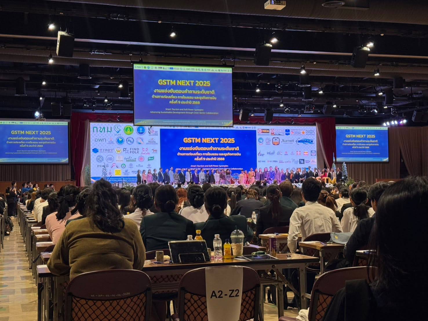 วันที่ 9 กันยายน 2568 อ.กมล เกียรติพงษ์ อาจารย์ประจำสาขาวิชาการท่องเที่ยว การบริการ อีเวนท์ และการจัดการภัตตาคารนานาชาติ พร้อมด้วย อ.ภาณุพัฒน์ วิบูลรุ่งเรือง อาจารย์ประจำสาขาวิชาอาหารสร้างสรรค์และการจัดการบริการอาหาร นำนักศึกษาสาขาวิชาการท่องเที่ยว การบริการ อีเวนท์ และการจัดการภัตตาคารนานาชาติ และสาขาวิชาอาหารสร้างสรรค์และการจัดการบริการอาหาร เข้าร่วมการแข่งขันตอบคำถามด้านการท่องเที่ยวและการบริการระดับชาติ ด้านการท่องเที่ยว การโรงแรม และธุรกิจการบิน ครั้งที่ 9 หัวข้อ “Smart Tourism and Soft Power Synergies: Advancing Sustainable Development through Sector Collaboration” ภายใต้การดำเนินงานของสถาบันบัณฑิตพัฒนบริหารศาสตร์ โดยมีนักศึกษาเข้าร่วมมากถึง 364 กลุ่ม จากมหาวิทยาลัยที่มีการจัดการเรียนการสอนด้านการท่องเที่ยวและบริการทั่วประเทศไทย