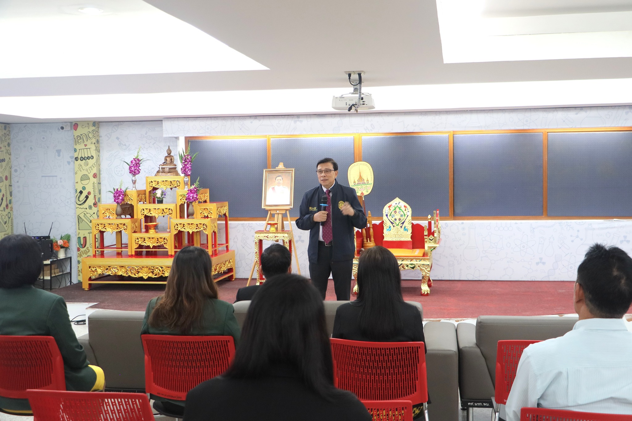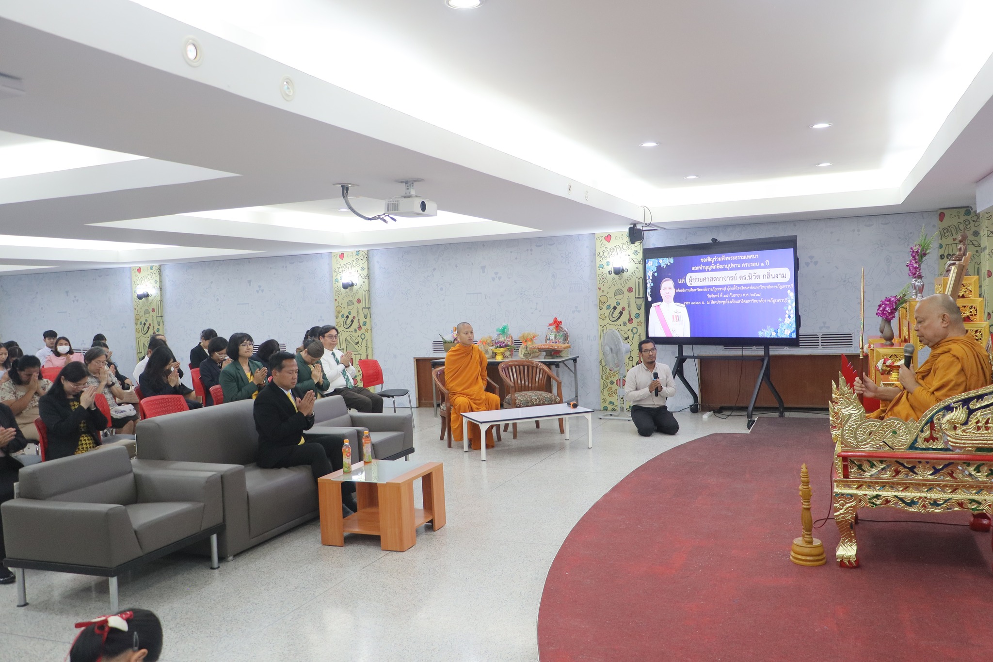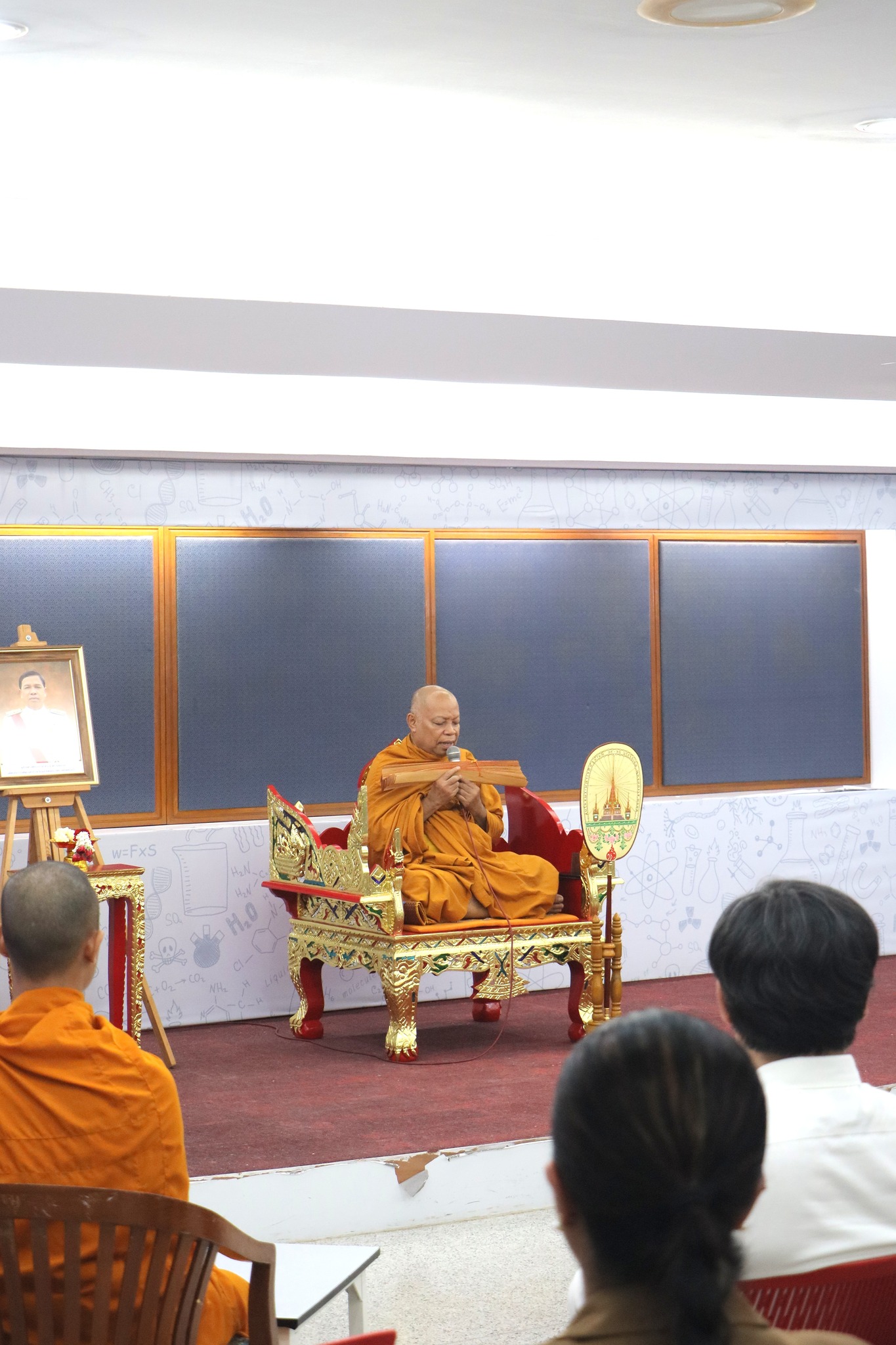 โอกาสนี้ ผศ.ดร.เสนาะ กลิ่นงาม ได้เล่าประวัติและความเป็นมาของการก่อตั้งโรงเรียนสาธิตฯ ตั้งแต่อดีตจนถึงปัจจุบัน จากนั้นรับฟังพระธรรมเทศนา โดย พระมหา ดร.สมศักดิ์ เจ้าอาวาสวัดพระพุทธไสยาสน์ จากนั้นผู้บริหาร คณาจารย์ พร้อมถวายสังฆทาน กรวดน้ำและรับศีล เสร็จพิธี