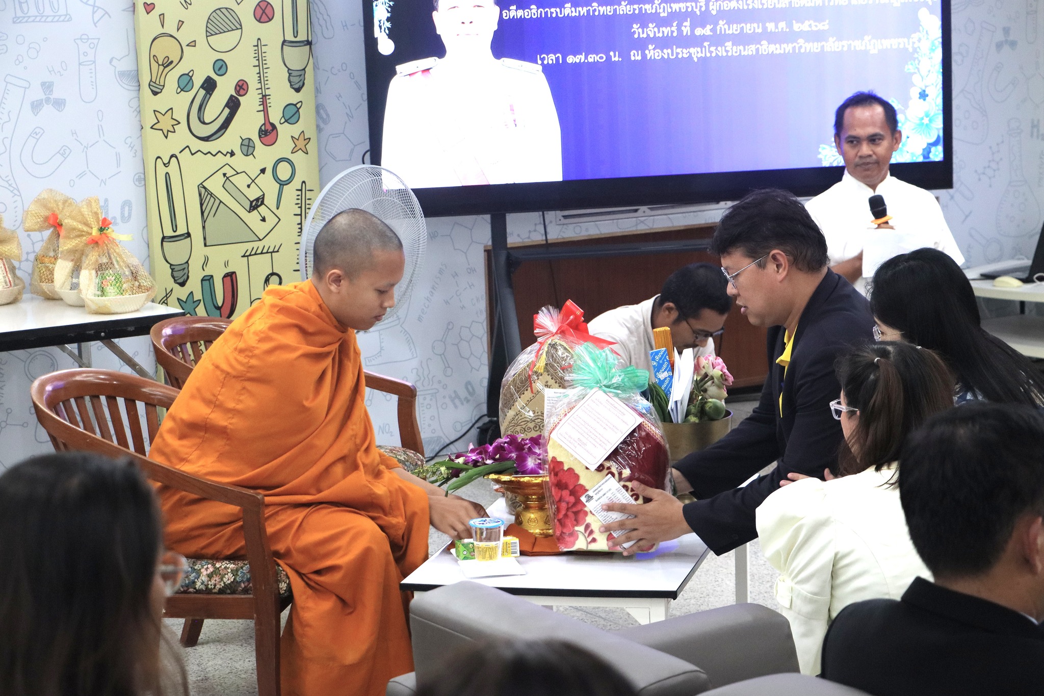 วันที่ 15 กันยายน 2568 โรงเรียนสาธิตมหาวิทยาลัยราชภัฏเพชรบุรี จัดพิธีทักษิณานุปทาน เนื่องในโอกาสครบรอบ 1 ปี ผู้ช่วยศาสตราจารย์ ดร.นิวัต กลิ่นงาม อดีตอธิการบดีมหาวิทยาลัยราชภัฏเพชรบุรี ผู้ก่อตั้งโรงเรียนสาธิตมหาวิทยาลัยราชภัฏเพชรบุรี ณ ห้องประชุมโรงเรียนสาธิตมหาวิทยาลัยราชภัฏเพชรบุรี โดยที รศ.ดร.พัชรศักดิ์ อาลัย รักษาราชการแทนอธิการบดีมหาวิทยาลัยราชภัฏเพชรบุรี เป็นประธานในพิธี พร้อมด้วย ผศ.ดร.เสนาะ กลิ่นงาม ที่ปรึกษาอธิการบดี ด้านยุทธศาสตร์และนโยบายบริหารมหาวิทยาลัย คณะผู้บริหาร อาจารย์ บุคลากรและนักเรียนเข้าร่วมพิธี
