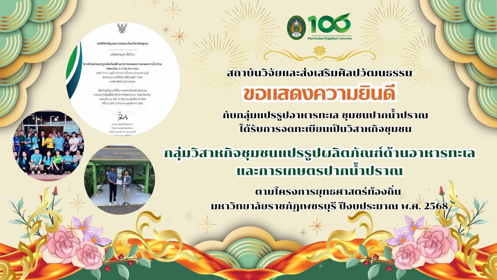 สืบเนื่องจากความร่วมมือระหว่างสถาบันวิจัยและส่งเสริมศิลปวัฒนธรรม มหาวิทยาลัยราชภัฏเพชรบุรี และ คณะวิทยาศาสตร์และเทคโนโลยี ในการขับเคลื่อนและดำเนินโครงการพัฒนาอาหารทะเลเพื่อสร้างมูลค่าเพิ่มเชิงพาณิชย์ ตามโครงการยุทะศาสตร์พัฒนาท้องถิ่นมหาวิทยาลัยราชภัฏเพชรบุรี ประจำปีงบประมาณ พ.ศ. 2568 ซึ่งมีเป้าหมายในการมุ่งเน้นการรวมกลุ่มเพื่อจัดตั้งวิสาหกิจชุมชนเพื่อการเพิ่มมูลค่าอาหารทะเล ชุมชนปากน้ำปราณ