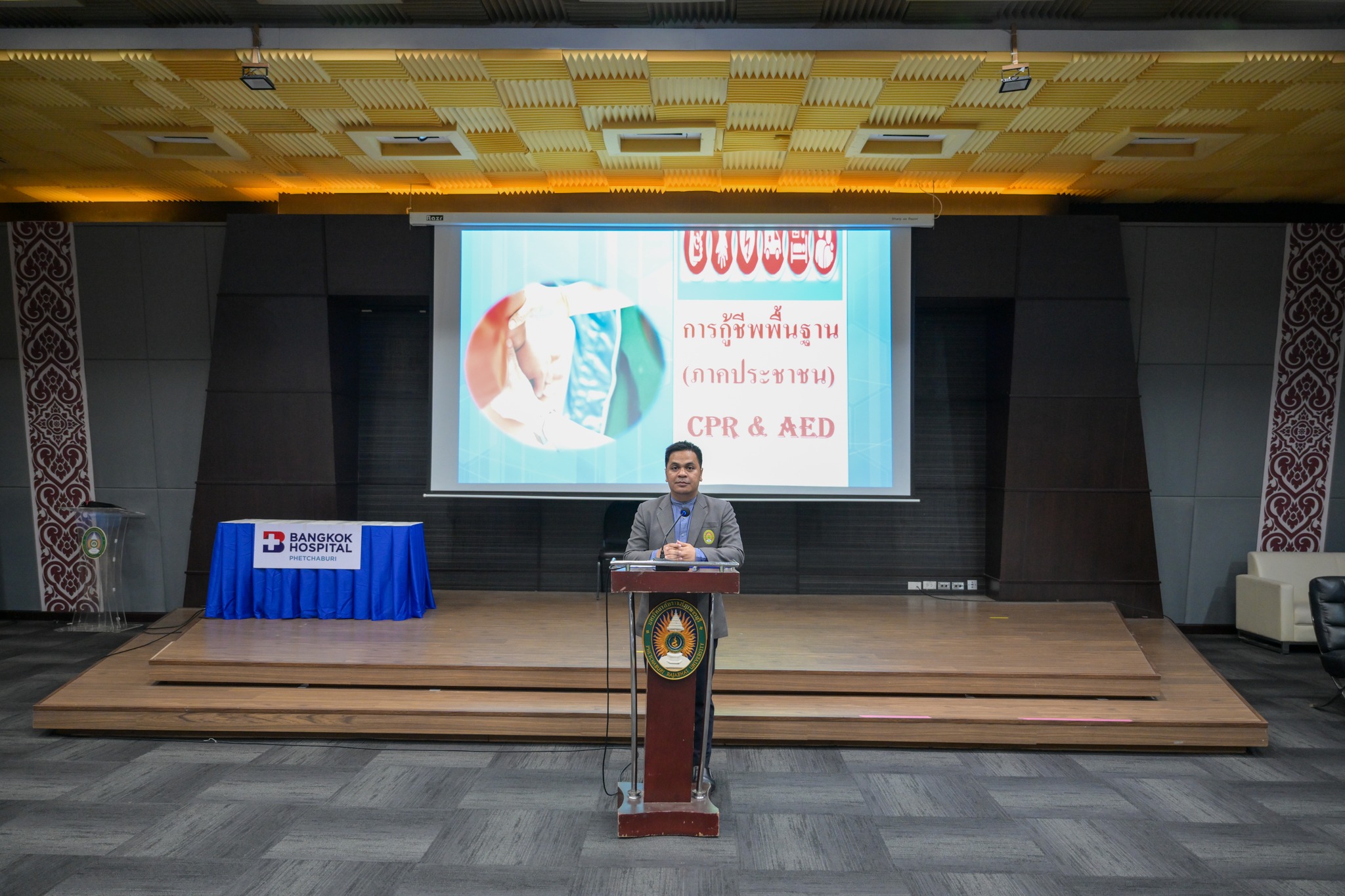วันที่ 17 กันยายน 2568 ห้องประชุมเอกศักดิ์บุตรลับ อาคารสุเมธตันติเวชกุล มหาวิทยาลัยราชภัฏเพชรบุรี อ.ดร.เมธาวิน สาระยาน ผู้ช่วยอธิการบดีมหาวิทยาลัยราชภัฏเพชรบุรี เป็นประธานเปิดโครงการอบรม “CPR & First Aid รุ่นใหม่ ใส่ใจชีวิต” ที่งานบริการและสวัสดิการนักศึกษา กองพัฒนานักศึกษาได้จัดขึ้น โดยได้รับเกียรติวิทยาการจากโรงพยาบาลกรุงเทพ เพชรบุรี มาถ่ายทอดขั้นตอนและฝึกปฏิบัติให้แก่นักศึกษา