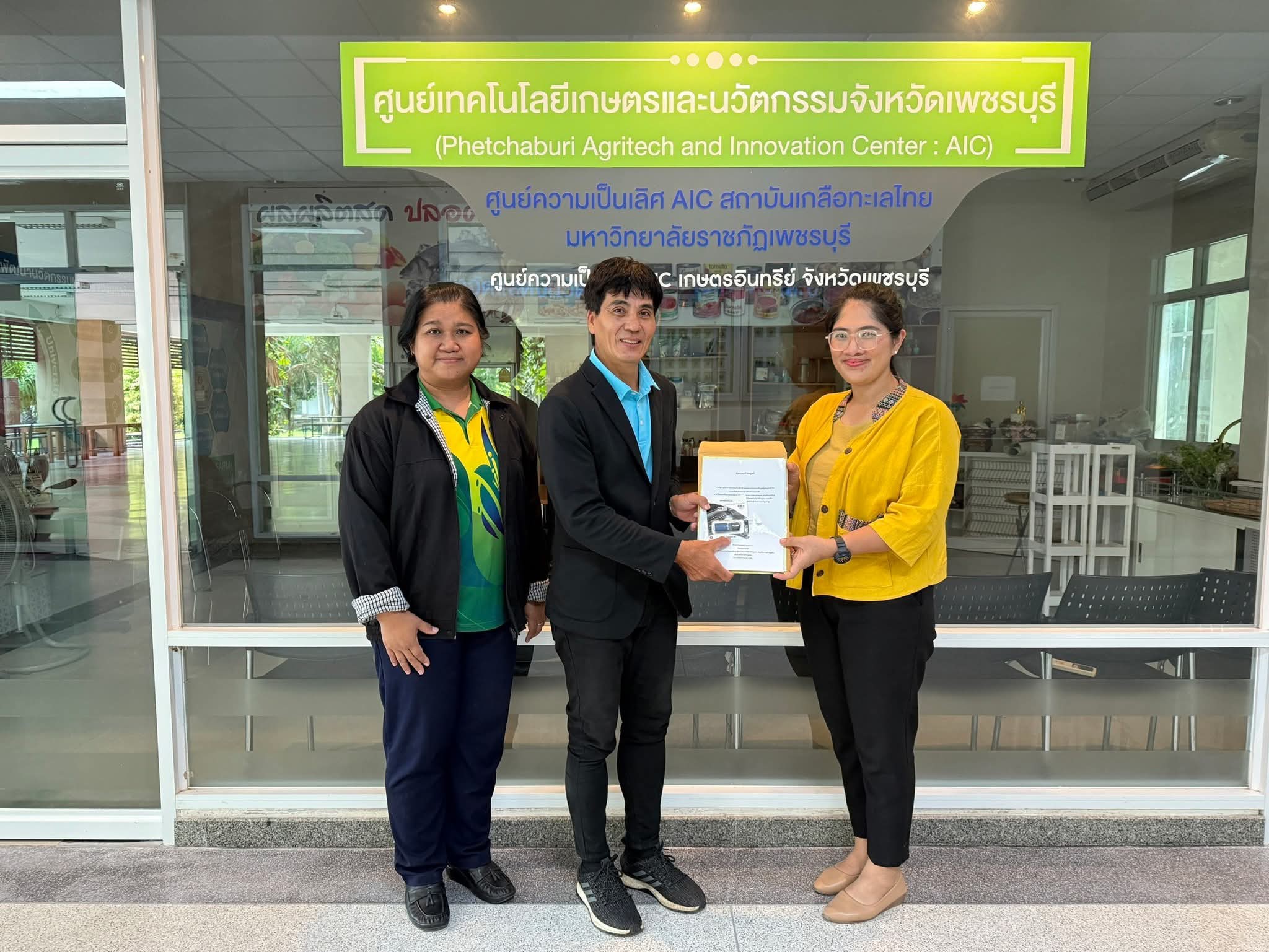 อ.ประกาศ ชมภู่ทอง และ อ.ดร.จุฑามาศ ทะแกล้วพันธ์ อาจารย์ประจำคณะเทคโนโลยีการเกษตร ส่งมอบผลการดำเนินงาน “เค้กกล้วยหอมกรอบ” ผลอตภัณฑ์ที่เกิดจากขับเคลื่อนการยกระดับสินค้าเกษตรสู่ผลิตภัณฑ์เชิงสร้างสรรค์ ภายใต้ “โครงการส่งเสริมและพัฒนาผู้ประกอบการวิสาหกิจชุมชน ปีงบประมาณ 2568” ของสำนักงานเกษตรจังหวัดเพชรบุรี