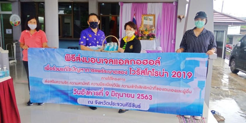 มหาวิทยาลัยราชภัฏเพชรบุรี มอบเจลแอลกอฮอล์ล้างมือให้กับพื้นที่บริการวิชาการในจังหวัดประจวบคีรีขันธ์