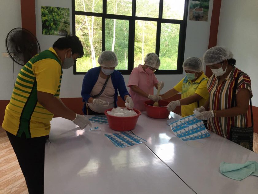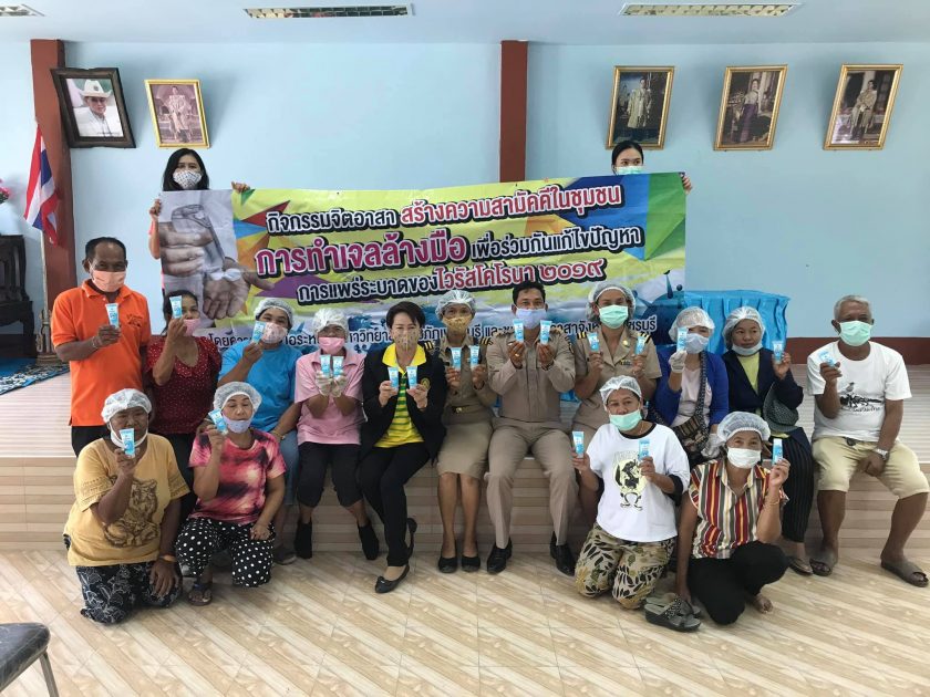 สำหรับการผลิตและมอบเจลแอลกอฮอล์ล้างมือในครั้งนี้ เกิดขึ้นจากการที่สำนักงานยุทธศาสตร์การพัฒนาท้องถิ่นตามศาสตร์พระราชา มหาวิทยาลัยราชภัฏเพชรบุรี ได้จัดโครงการส่งเสริมความรัก ความสามัคคี ความมีระเบียบวินัยความเข้าใจสิทธิหน้าที่ของตนเองและผู้อื่น ภายใต้พื้นฐานของสังคมประชาธิปไตยอันมีพระมหากษัตริย์เป็นประมุข จังหวัดเพชรบุรี กิจกรรมหลักของโครงการนอกจากการอบรมแบบมีส่วนร่วมแล้ว ยังมีการทำโครงการร่วมกันเพื่อนำไปสู่ความรู้รักสามัคคี จึงได้มีการต่อยอดการดำเนินงานในลักษณะที่ให้ชุมชนได้เกิดการทำกิจกรรมร่วมกัน ส่งเสริมให้เกิดความสามัคคีของคนในชุมชนได้เรียนรู้กระบวนการแบ่งงาน แบ่งหน้าที่รับผิดชอบ และเกิดการแลกเปลี่ยนการทำงานเกิดขึ้น