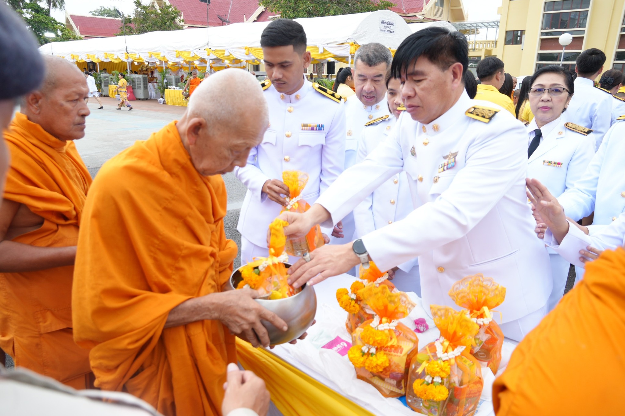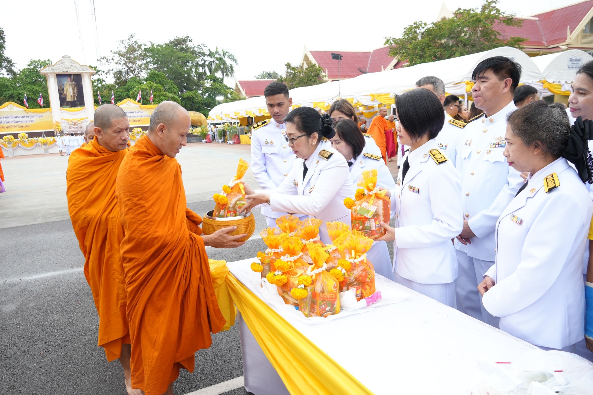 วันที่ 13 ตุลาคม 2568 เวลา 07.00 น. ณ ลานรัฐพิธี ศาลากลางจังหวัดเพชรบุรี รศ.ดร. พัชรศักดิ์ อาลัย รักษาราชการแทนอธิการบดีมหาวิทยาลัยราชภัฏเพชรบุรี มอบหมายให้ อ.ปิยวรรณ คุสินธุ์ ผู้อำนวยการสำนักวิทยบริการและเทคโนโลยีสารสนเทศพร้อมด้วยคณะผู้บริหารและบุคลากรสำนักวิทยบริการและเทคโนโลยีสารสนเทศ เข้าร่วมพิธีทำบุญตักบาตรถวายพระราชกุศล และพิธีวางพวงมาลาถวายราชสักการะ เนื่องใน “วันนวมินทรมหาราช” ประจำปี 2568 โดยมีนายไตรภพ วงศ์ไตรรัตน์ ผู้ว่าราชการ ผู้ว่าราชการจังหวัดเพชรบุรี เป็นประธานในการประกอบพิธี