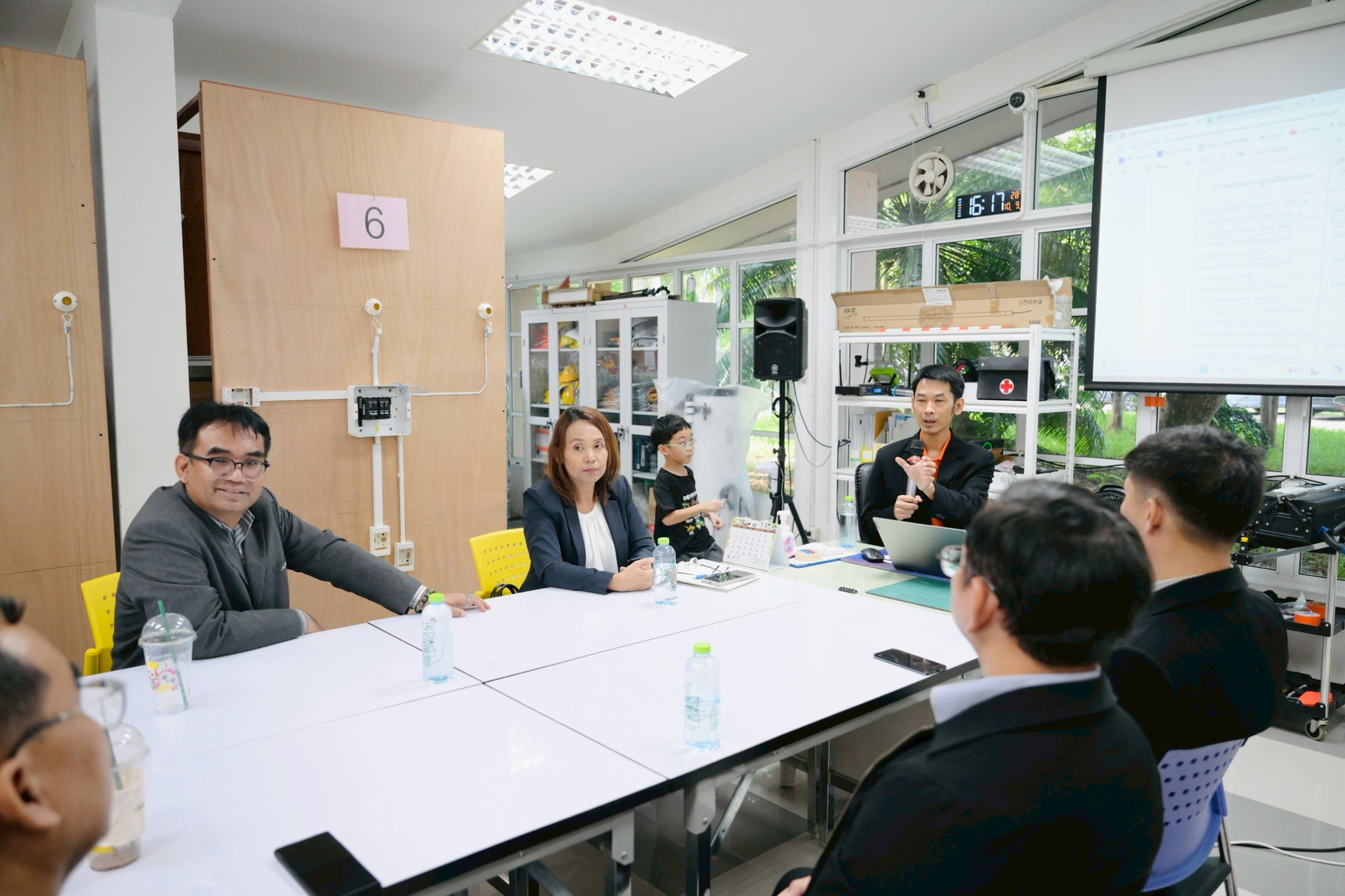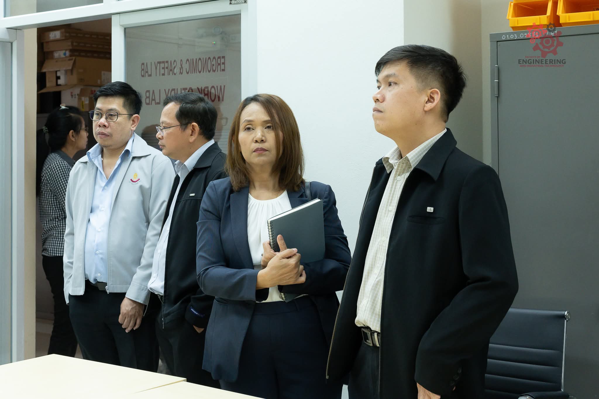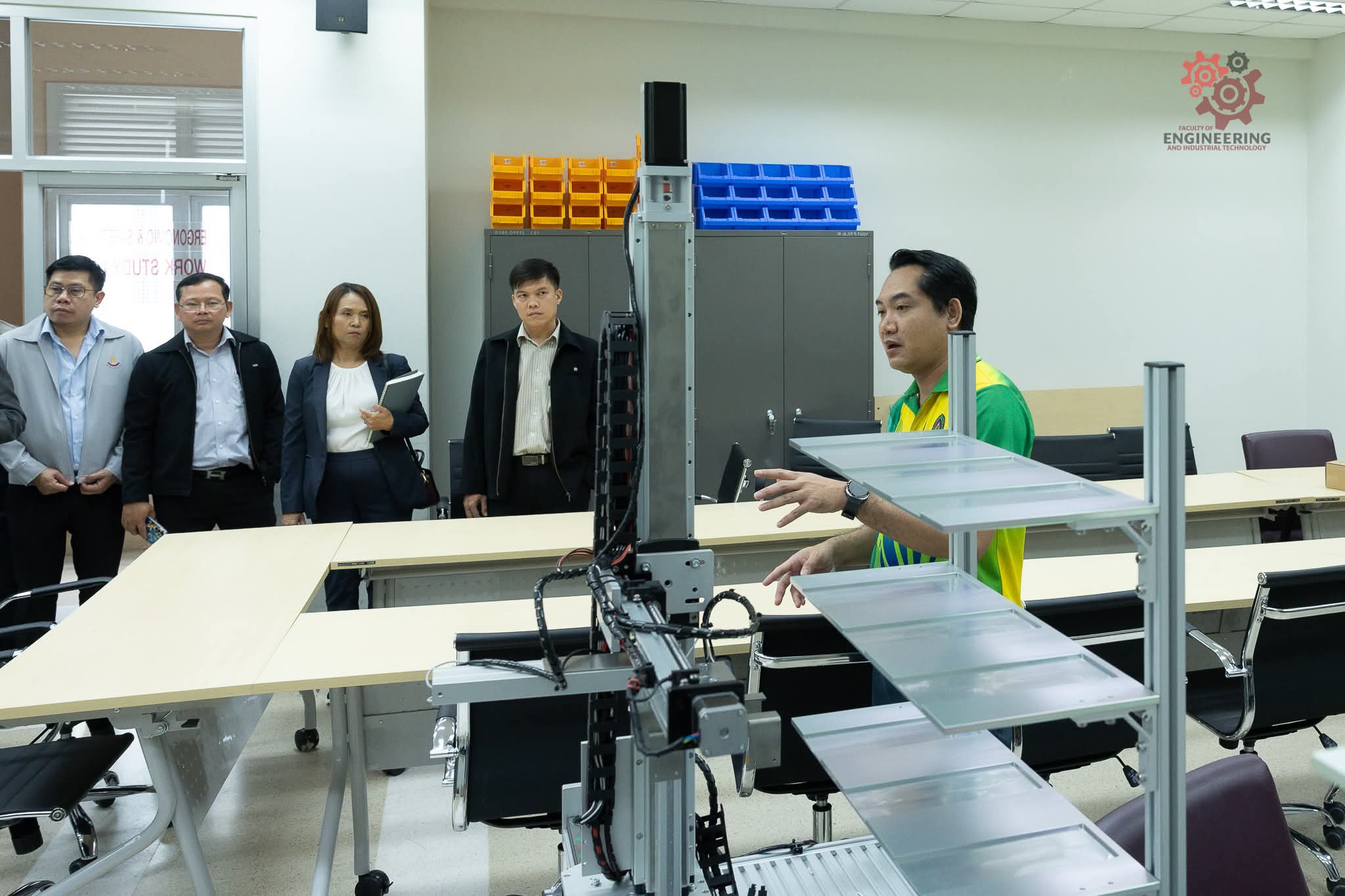 วันที่ 9 ตุลาคม 2568 ผศ.ดร.ขวัญชัย หนาแน่น คณบดีคณะวิศวกรรมศาสตร์และเทคโนโลยีอุตสาหกรรม พร้อมด้วยผู้บริหาร อาจารย์ และบุคลากรคณะวิศวกรรมศาสตร์และเทคโนโลยีอุตสาหกรรมให้การต้อนรับคณะผู้บริหารและบุคลากรจากคณะเทคโนโลยีอุตสาหกรรม มหาวิทยาลัยราชภัฏหมู่บ้านจอมบึง ในการเข้าศึกษาดูงานและแลกเปลี่ยนเรียนรู้ด้านห้องปฏิบัติการที่มุ่งเน้นการฝึกทักษะปฏิบัติ